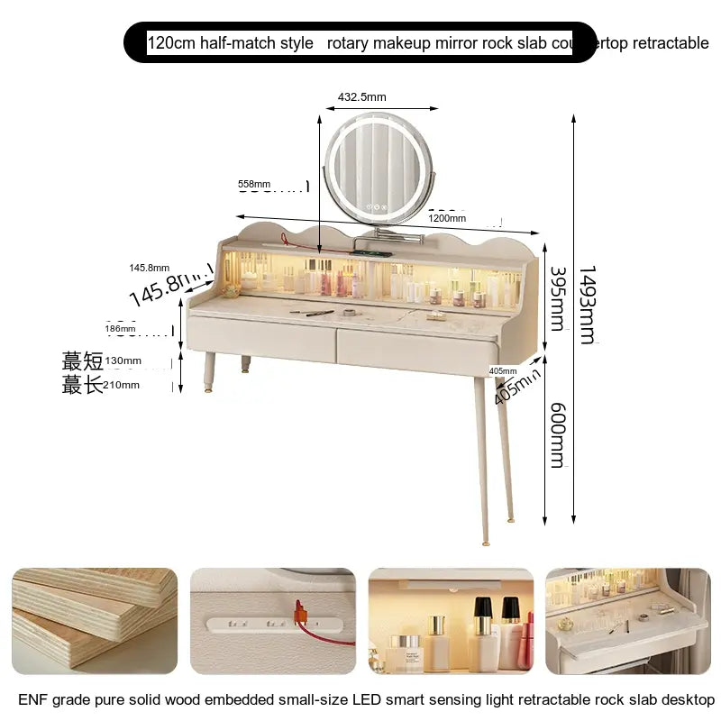 Originating from Guangdong Province, this makeup table is ideal for urban dwellings. It enhances a minimalist decor approach while serving the functional aspects of daily makeup routines. Whether in your bedroom or a dedicated beauty nook, it melds seamlessly with any interior design concept.