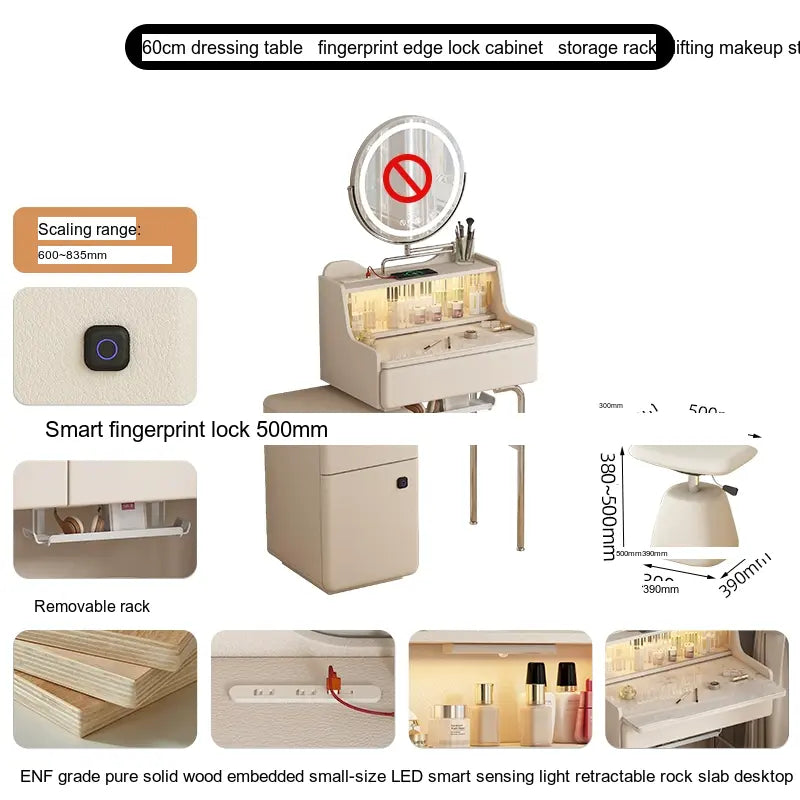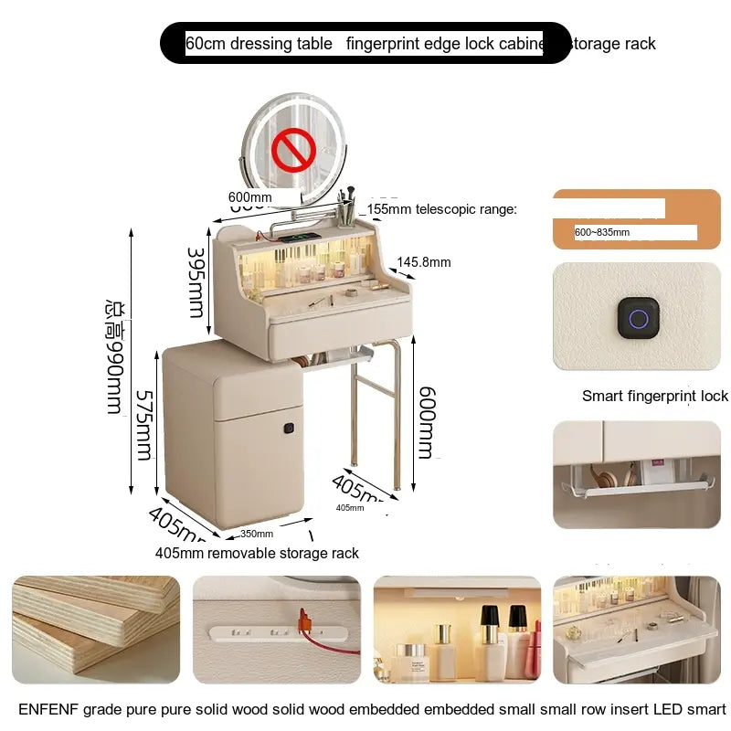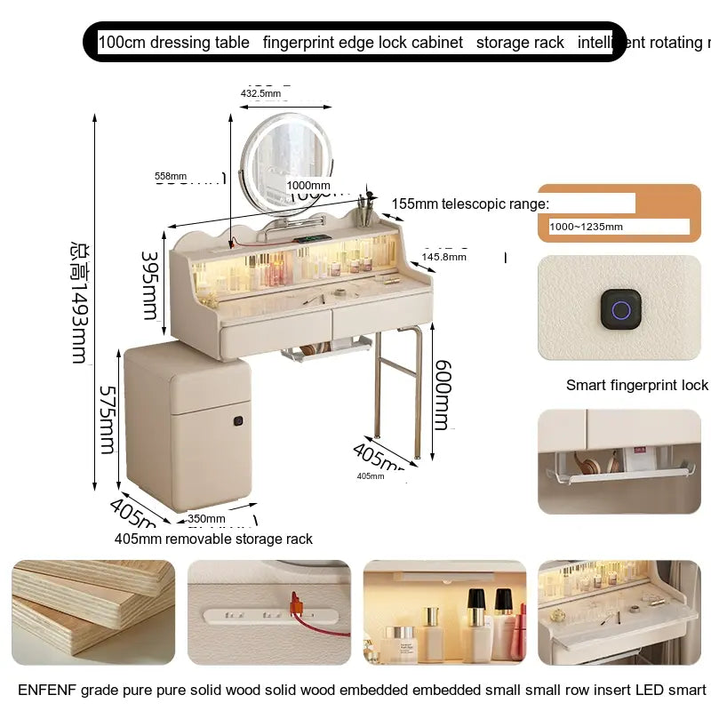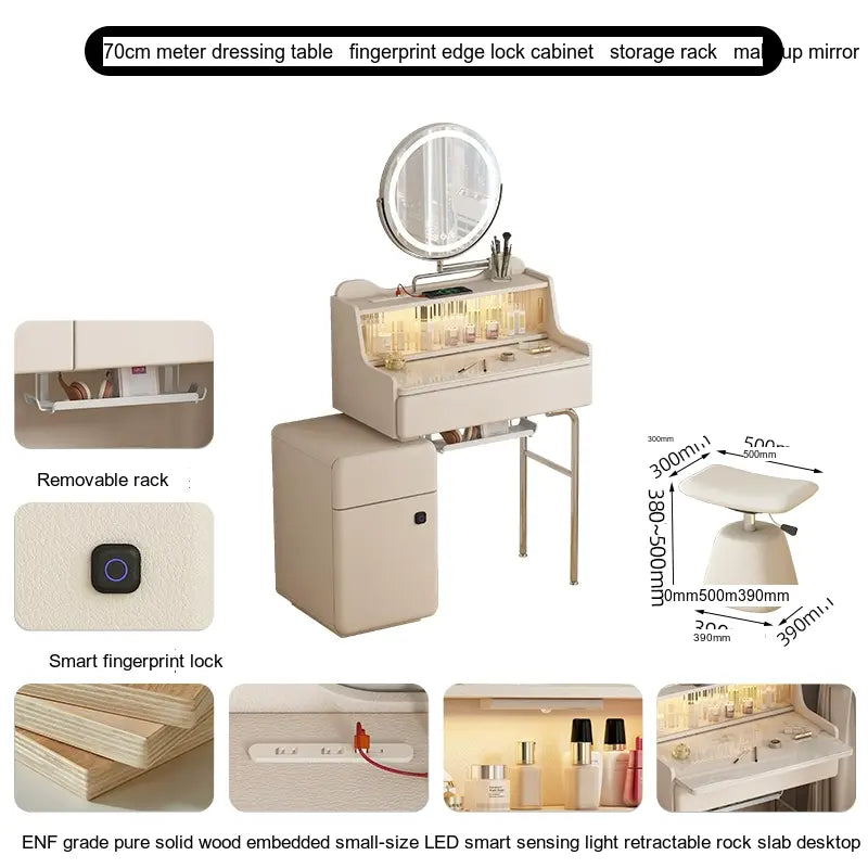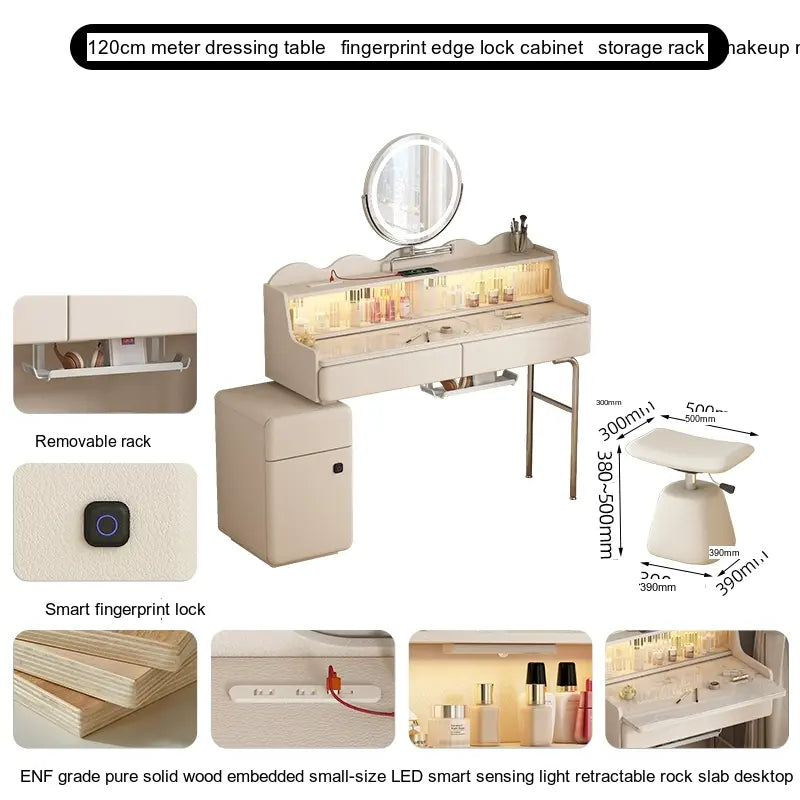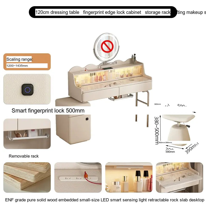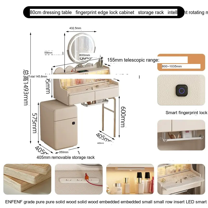 - Storage Solutions: Essentials and cosmetics are easily organized in the thoughtfully designed cupboard, which includes fingerprint edge cabinets for a sleek and seamless appearance. Choose from options with or without integrated intelligent rotating makeup mirrors for added convenience.