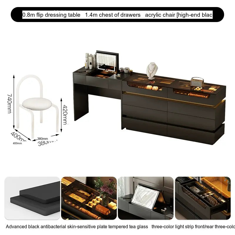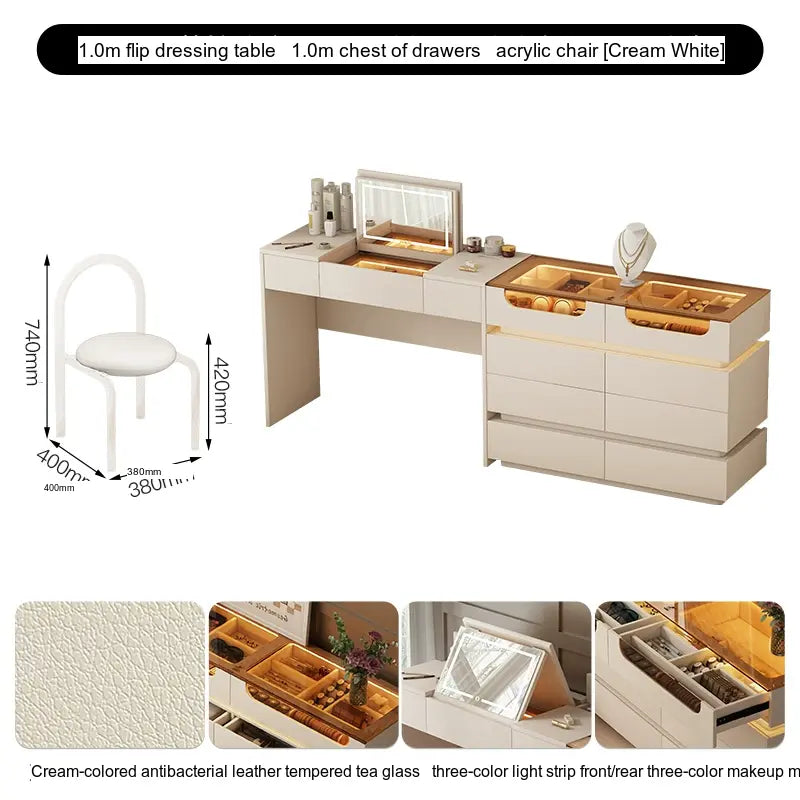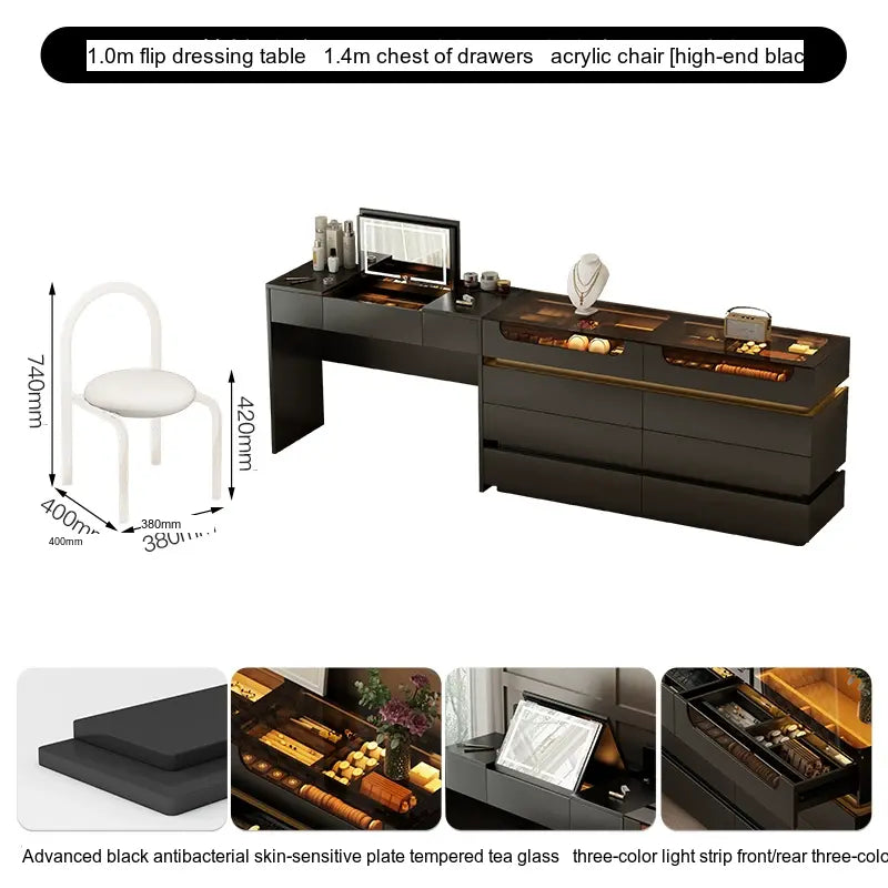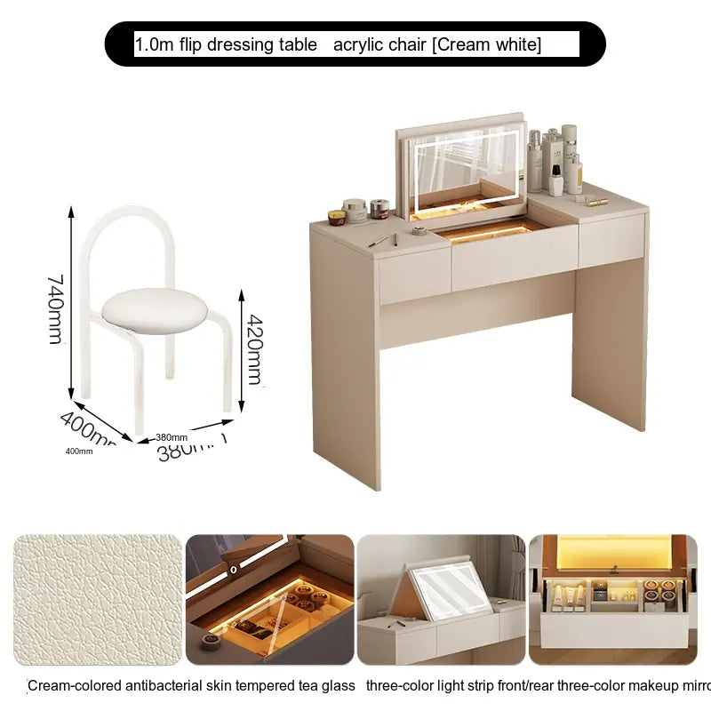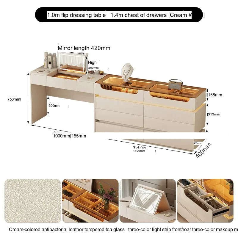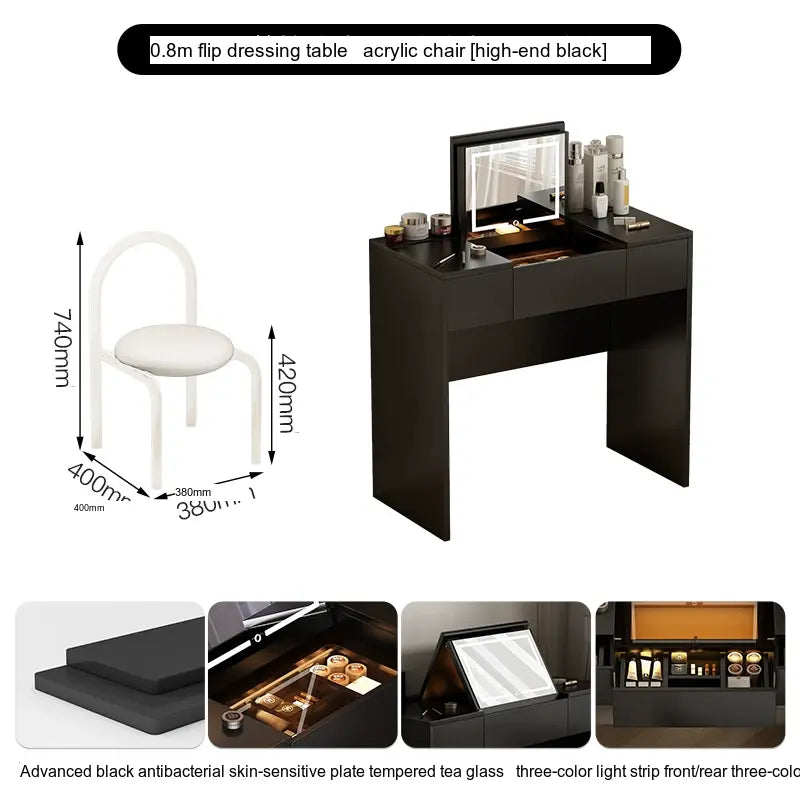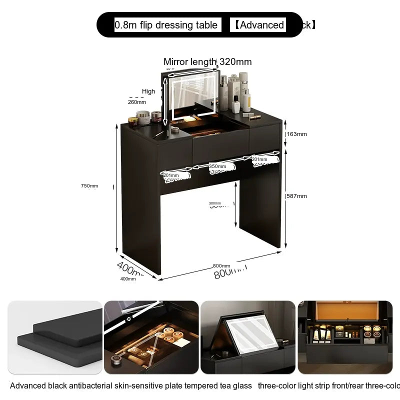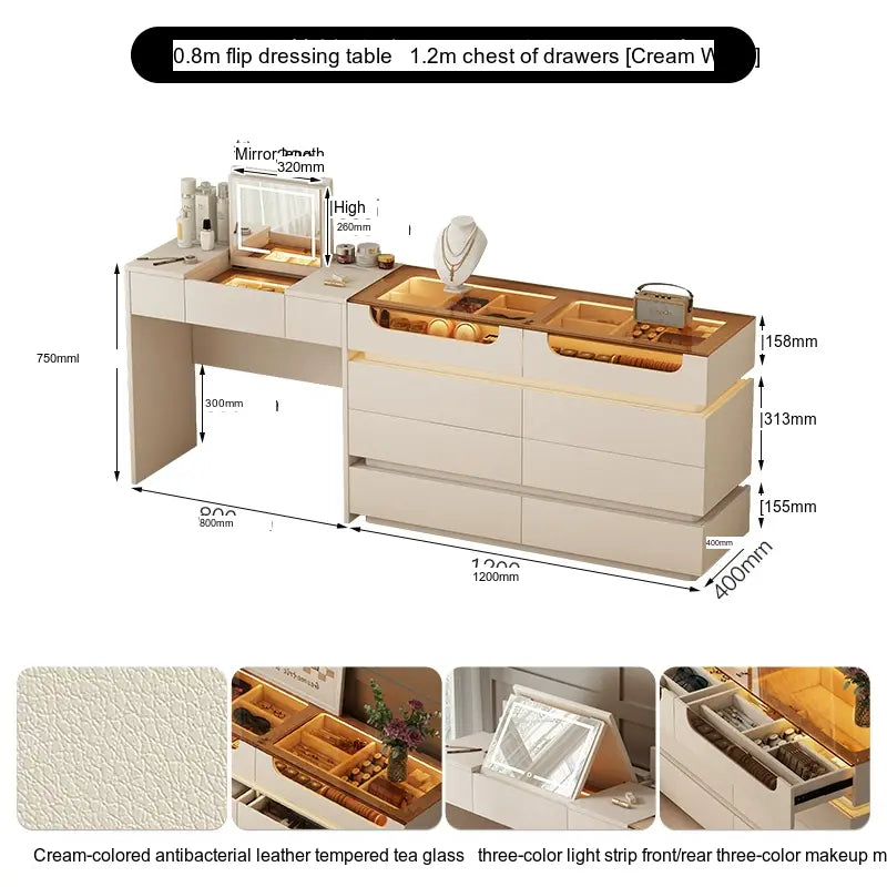 This dressing table comes with varied size options, allowing you to choose the one that best fits your space. With versions available in 0.8m, 1.0m, 1.2m, and 1.4m, you can easily find the perfect match for your room’s configuration. Each option incorporates a spacious layout designed for optimal storage, accommodating everything from makeup to accessories, maintaining an organized space that's easy to navigate.