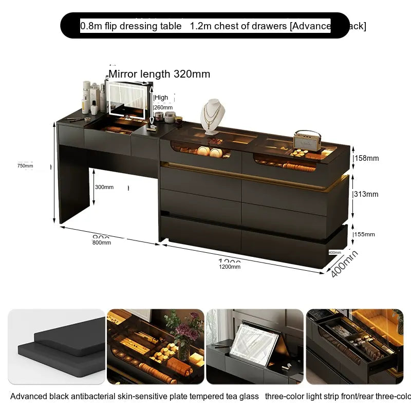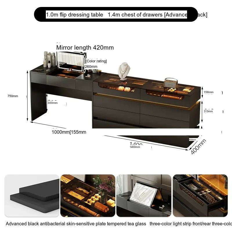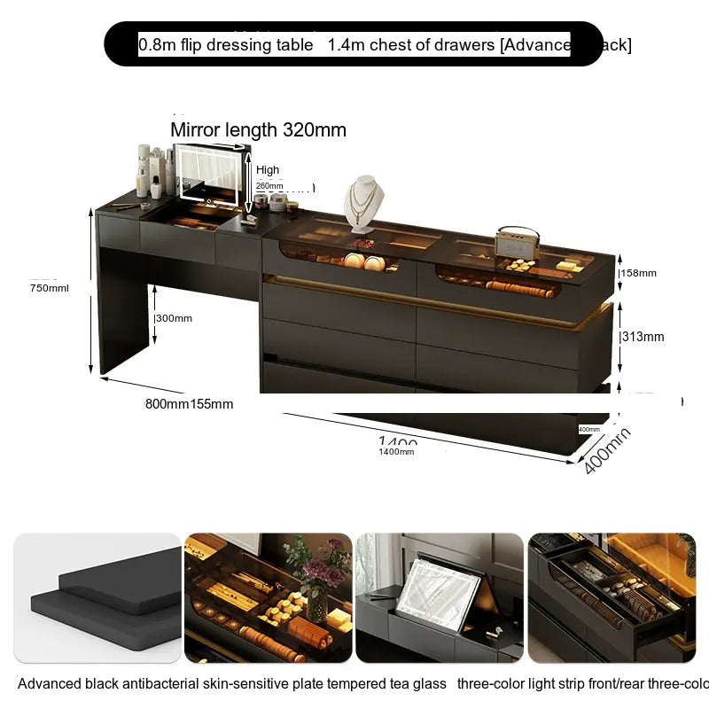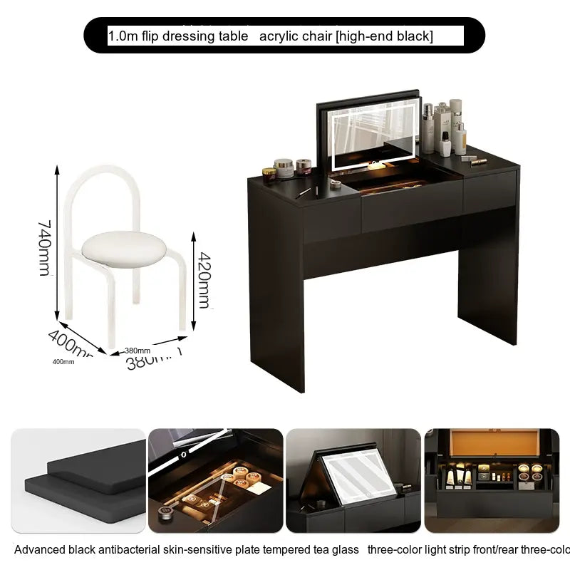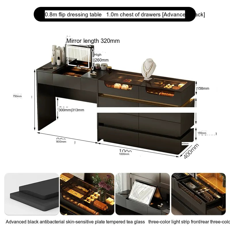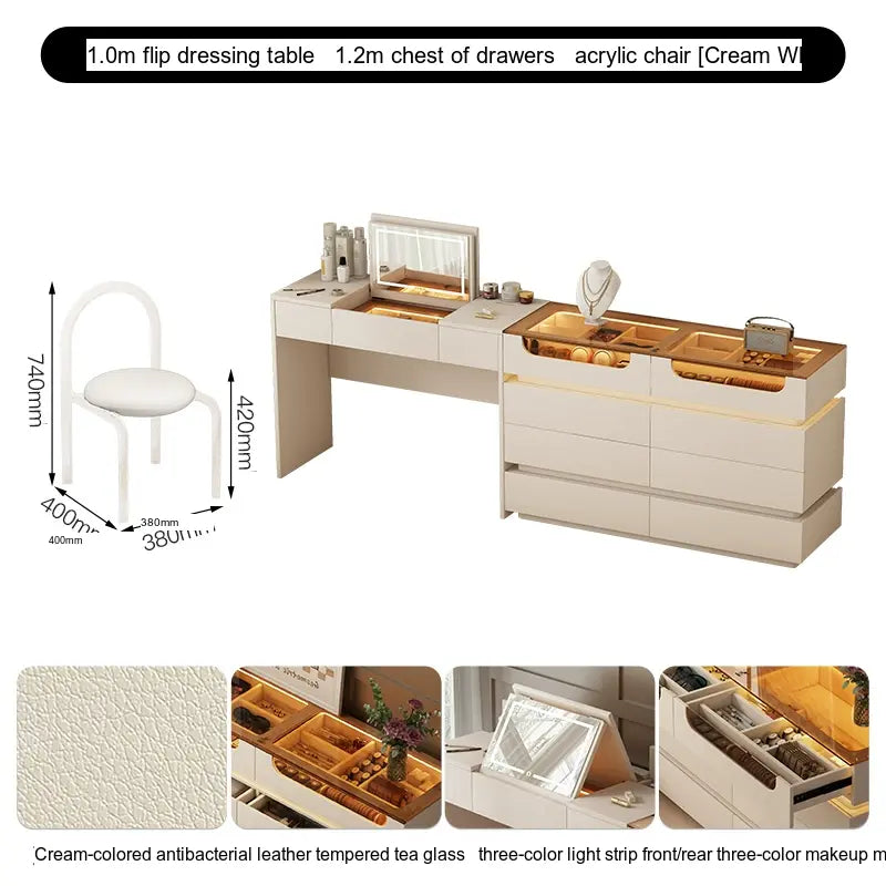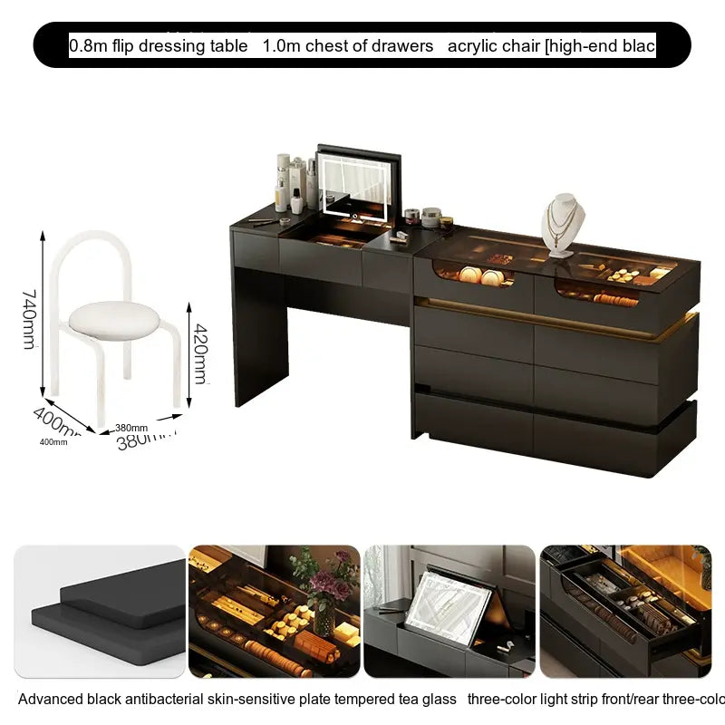 This dressing table comes with varied size options, allowing you to choose the one that best fits your space. With versions available in 0.8m, 1.0m, 1.2m, and 1.4m, you can easily find the perfect match for your room’s configuration. Each option incorporates a spacious layout designed for optimal storage, accommodating everything from makeup to accessories, maintaining an organized space that's easy to navigate.