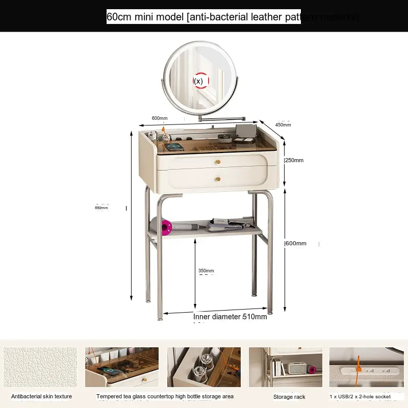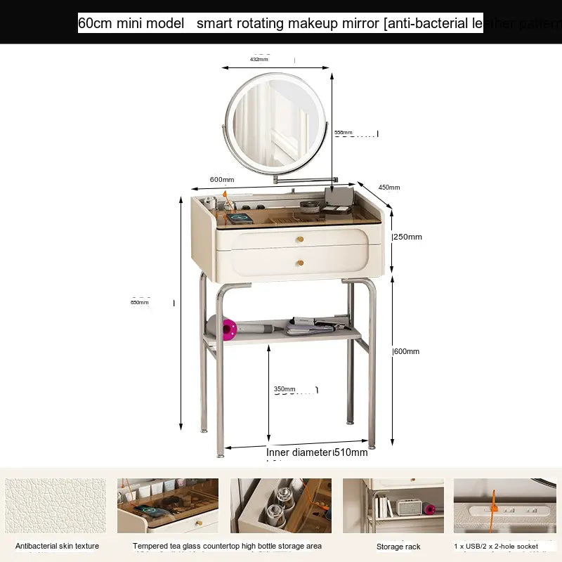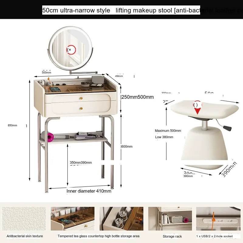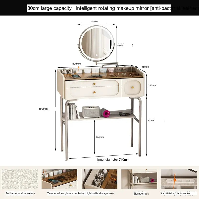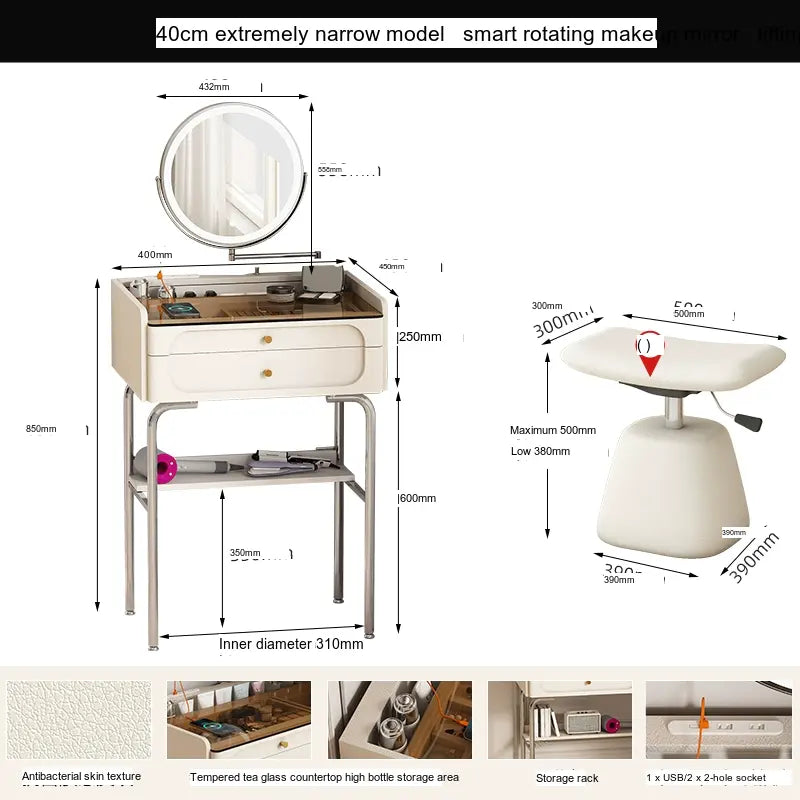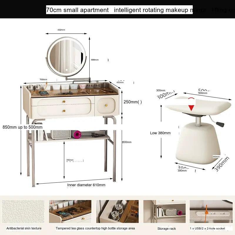 Equipped with a high-definition rotating makeup mirror, this dressing table allows for effortless makeup application from various angles, ensuring you look your best at all times. The 360-degree mirror enhances the user experience by providing clear visibility, making it easier than ever to perfect your look. Additionally, it includes a simple yet sophisticated lifting makeup stool designed to provide comfort during your beauty regime, making long grooming sessions something to look forward to.