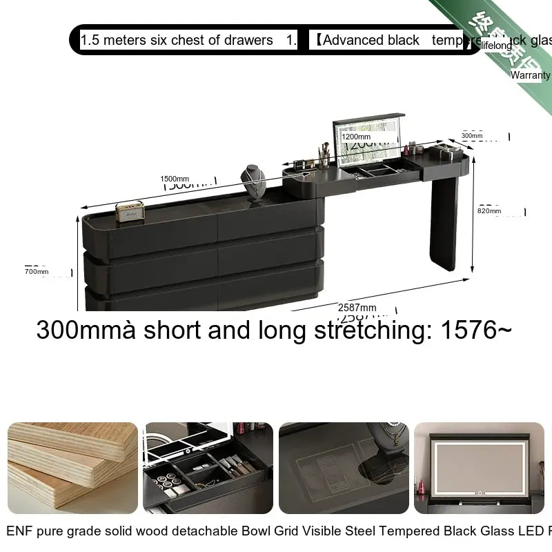 This dressing table is not just about looks; it is designed with practicality in mind. The versatile space allows for effective organization with multiple storage options. Customers can select from various configurations, including 0.6m and 1.2m options featuring three or six chests of cabinets, each equipped with generous storage space. The assembly is straightforward, and clear installation instructions ensure a stress-free setup process.
