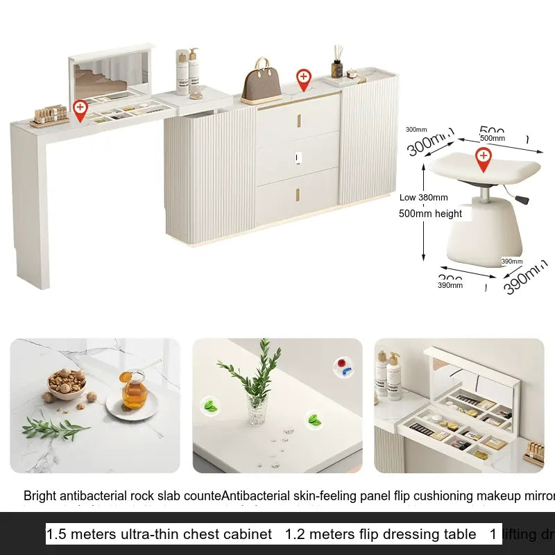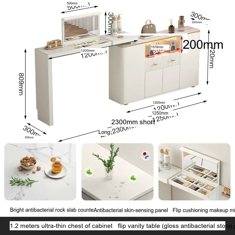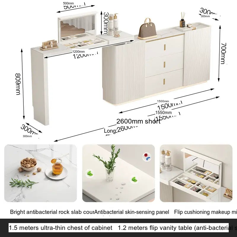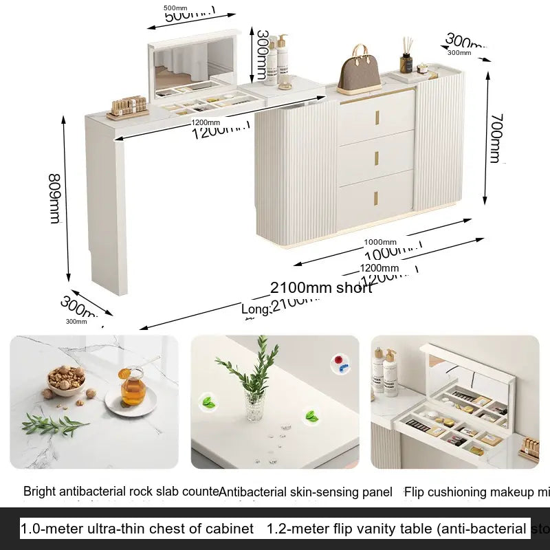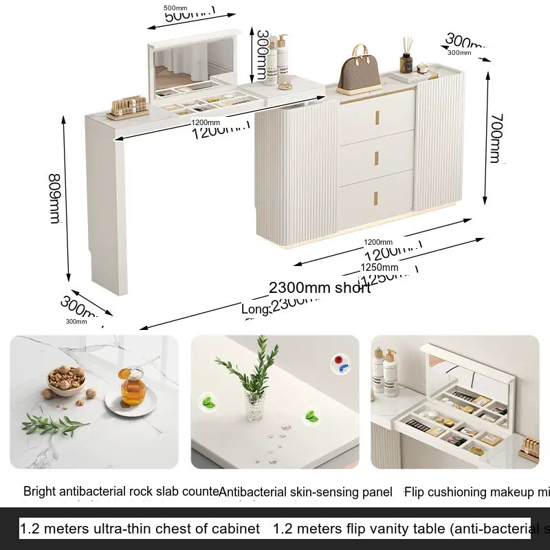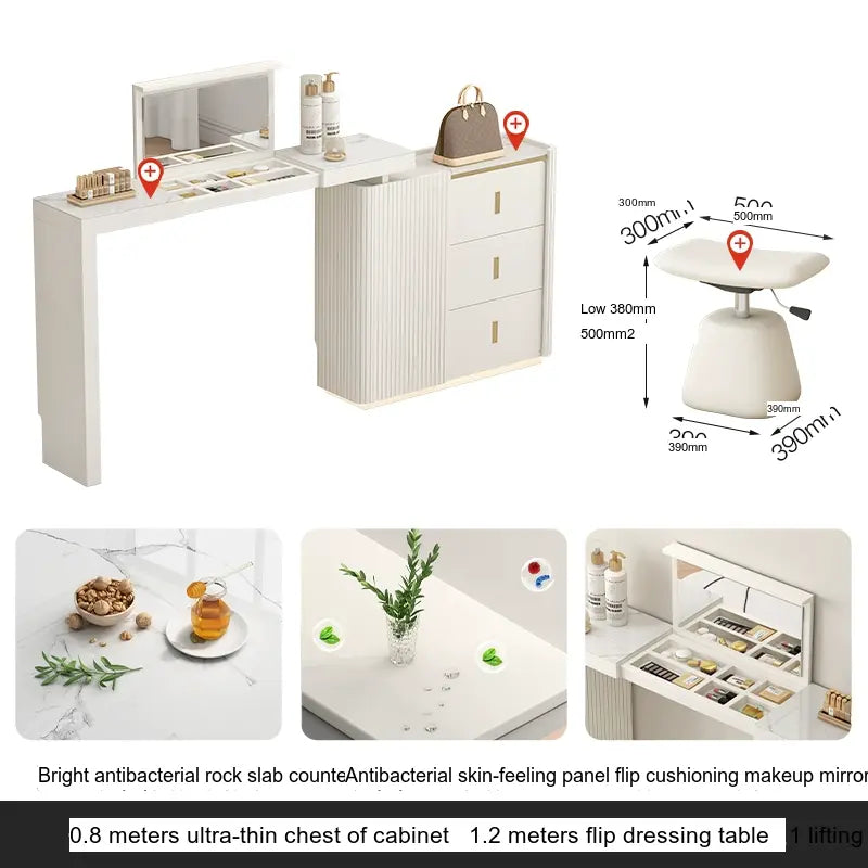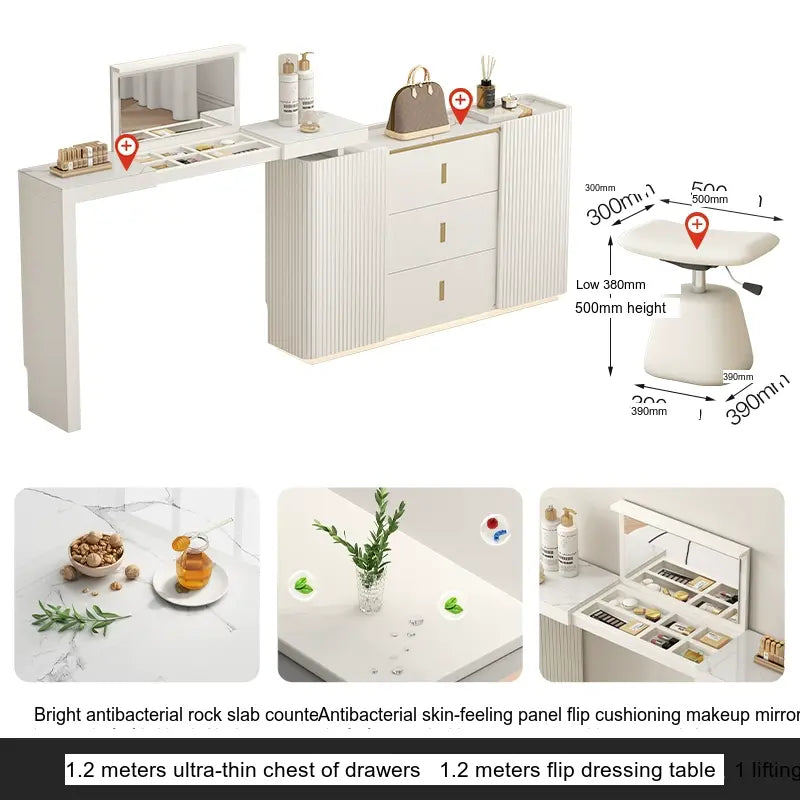 Worried about assembly? Fear not! The ZOSTON Marcellus dressing table comes fully assembled, saving you time and the hassle of complicated instructions. Additionally, there are various customization options available to suit your taste. Choose between multiple color classifications and sizes, ensuring that you find the perfect fit for your space. From the 1.2m flip dressing table paired with various stylish bedside cabinets and storage solutions to chic chests of drawers, each option is infused with the same quality craftsmanship and luxurious design.