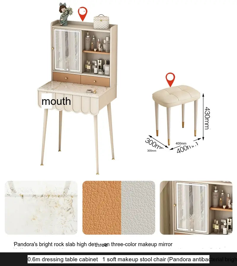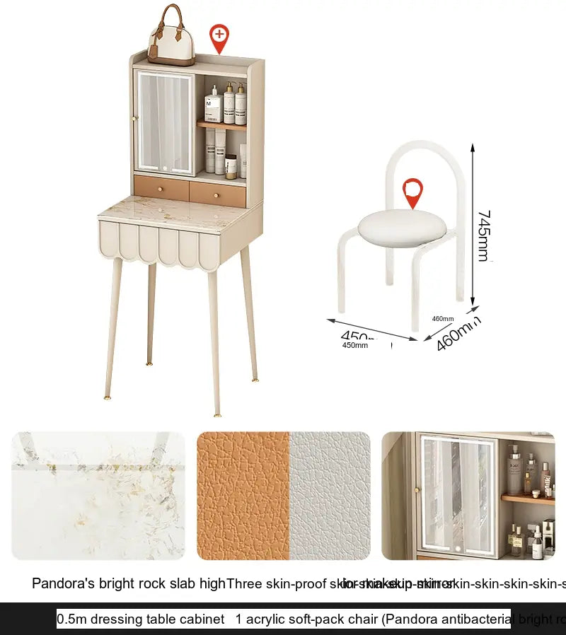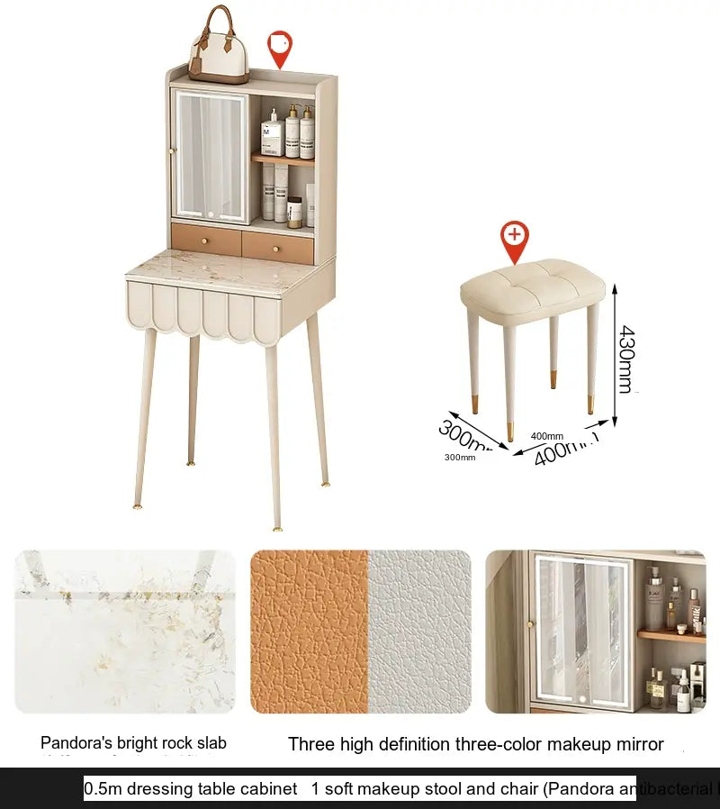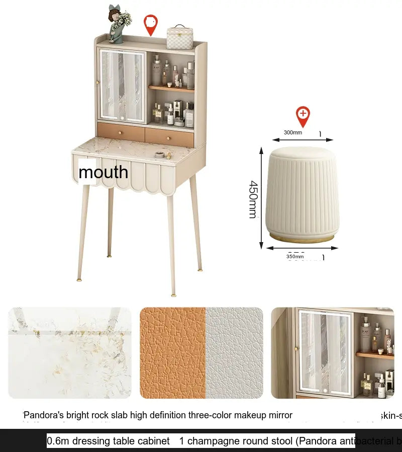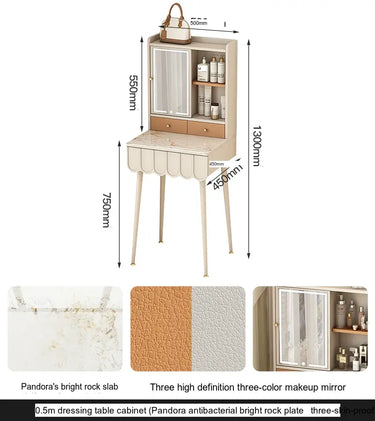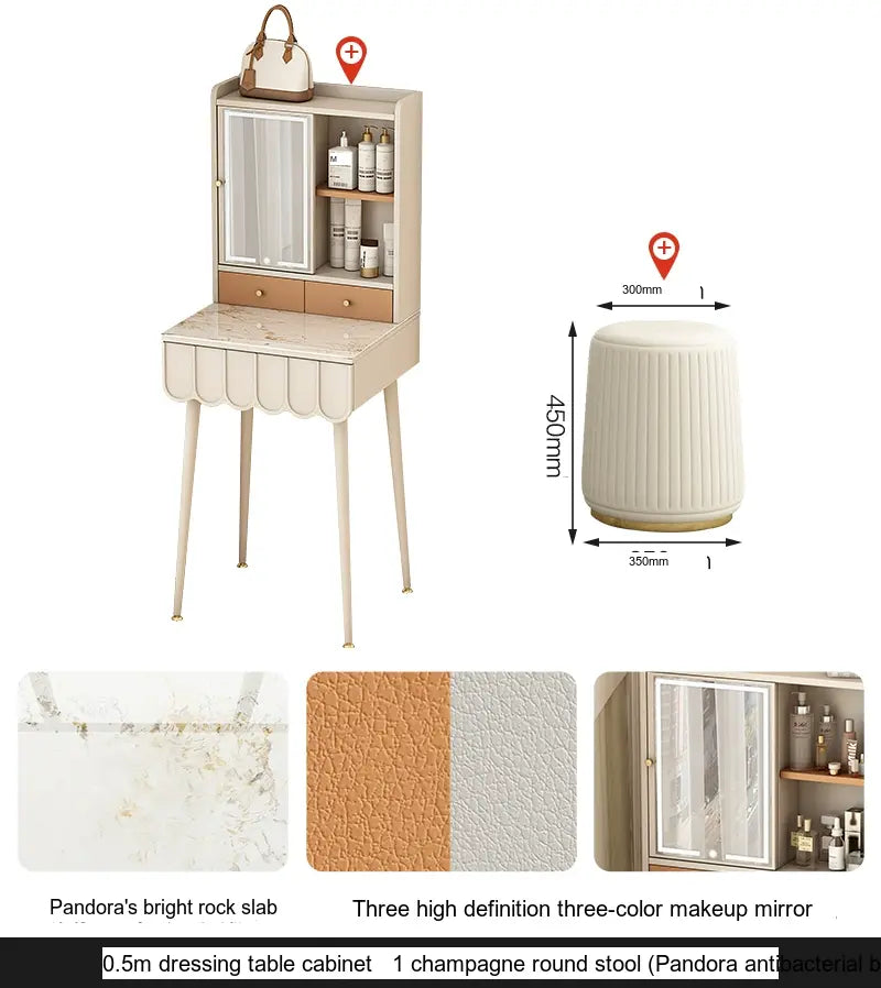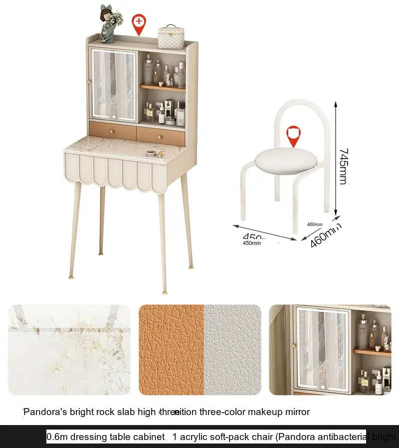 - Material & Durability: Constructed with a robust metal steel frame, the dressing table ensures long-lasting durability. The tabletop is elegantly finished with a Pandora antibacterial stone slab, providing both a luxurious look and high resistance to wear and tear, while ensuring hygiene with its antibacterial properties.