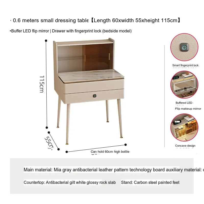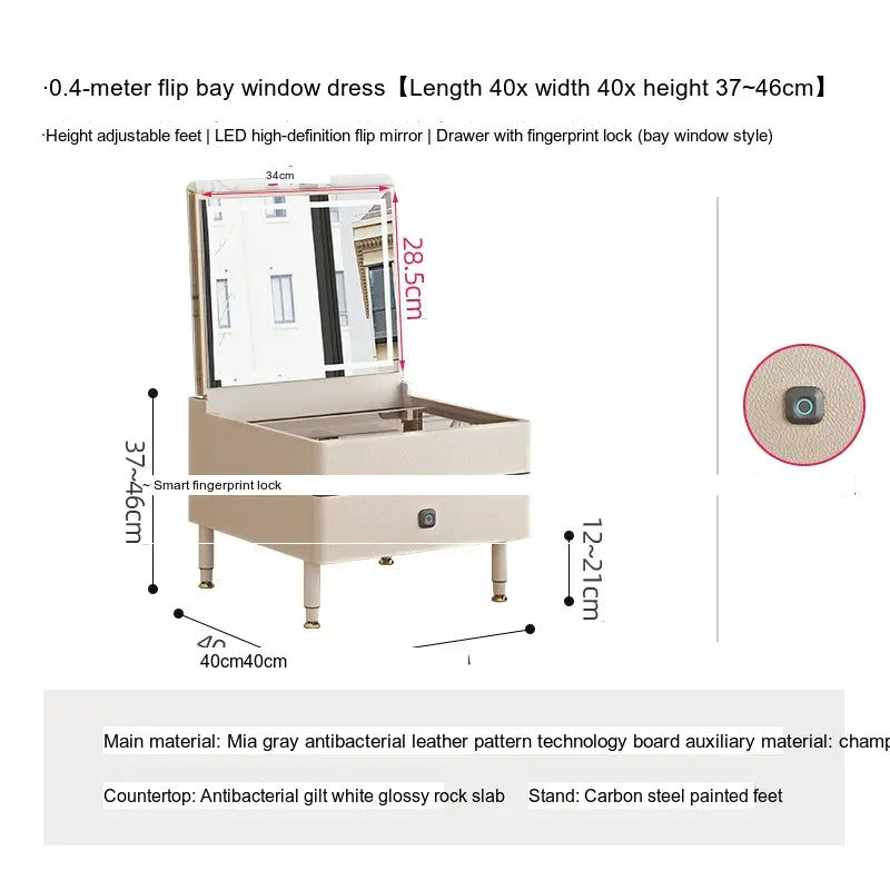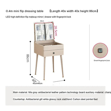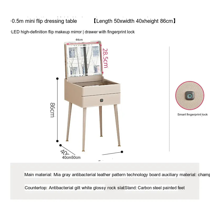 This dressing table is equipped with several smart features designed to meet modern needs. It includes a stylish mirror that enhances your reflection, allowing you to admire your look from every angle. For added convenience, the innovative flip mechanism lets you store items away seamlessly, giving you a clean and organized space. This versatility does not compromise style; in fact, it elevates the overall appeal of the dressing table, making it perfect for both grooming and as a functional workspace.