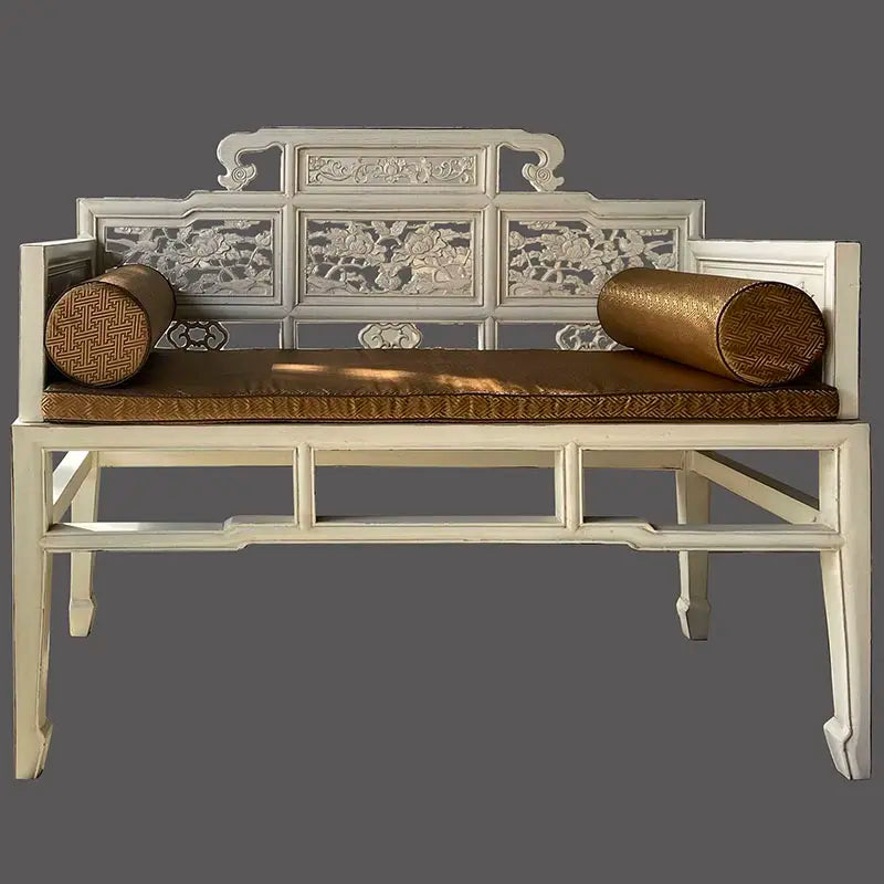 Drawing influence from nature and historical Chinese aesthetics, the Hiroshi Bench showcases delicate motifs carved into the backrest and sides. The gentle curves and angular symmetry reflect a sense of order and tranquility, turning this bench into both a functional seat and a visual centerpiece.