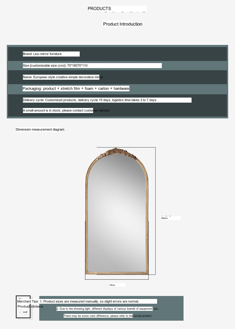 Introducing the stunning LANXESS Emilia Elegant Retro Wall-Mounted Fitting Mirror, an exquisite addition to your home decor that beautifully combines artistic style with practical functionality. Crafted by the renowned Langsheng Mirror Industry, this mirror is not just a utility; it’s a statement piece that embodies elegance and sophistication, perfect for enhancing any space, be it your living room, hallway, or bedroom.