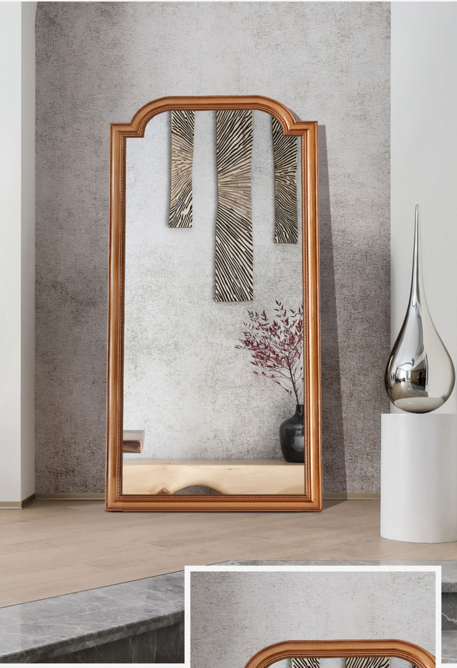Constructed with a high-quality wooden frame, this mirror resonates with a natural aesthetic that enhances its elegant appearance. The use of eco-friendly materials reflects a commitment to sustainability without compromising style. The carefully crafted wooden frame adds a luxurious touch while ensuring durability.
