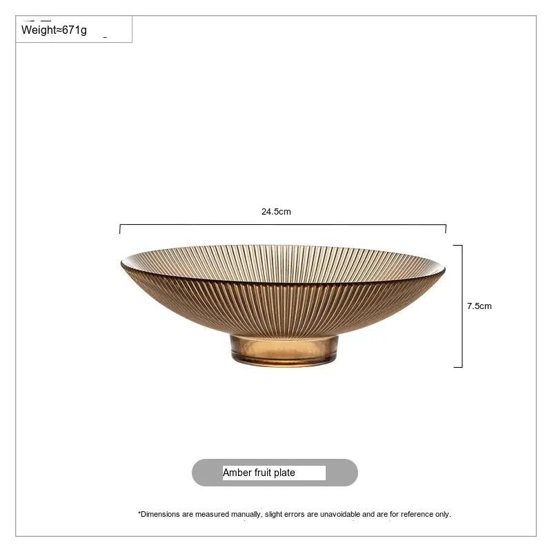 The Elysia fruit bowl is available in three sophisticated color options: Smoke Gray, Amber, and Phnom Penh Transparent. Each hue is carefully selected to enhance the aesthetic appeal of your home: