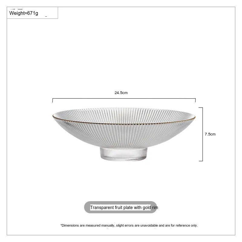 - Phnom Penh Transparent: This bowl exudes elegance with its crystal-clear design accented by delicate gold trimming. Perfect for showcasing your fruits or decorative items, it adds a luxurious touch to your table display.