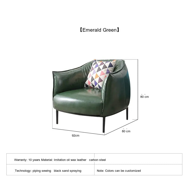 This armchair boasts a refined silhouette with clean, geometric shapes that lend it a contemporary feel while also providing a welcoming invitation to sit and relax. The design is versatile, allowing it to blend seamlessly with various decor themes, whether in a cozy living room, a stylish office, or a chic cafe setting. Its elegant appearance is further enhanced by an array of vibrant colors that resonate with modern design trends. Choose from striking options such as Ruo blue, emerald green, burgundy red, and more to harmonize with your space.