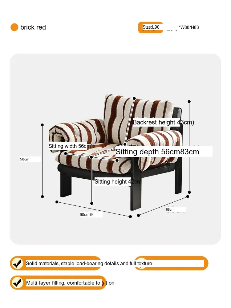 The Dalton Luxe Armchair displays a unique charm that seamlessly blends the classic with the contemporary. Its Overcoming Ancient style is an exquisite interpretation of vintage design elements, making it an eye-catching addition to any room. Available in a rich Brick Red hue, it provides a warm and inviting feel, while an elegant striped option adds a touch of sophistication that captures the eye. This armchair can serve as a statement piece or complement other furniture in your living space.