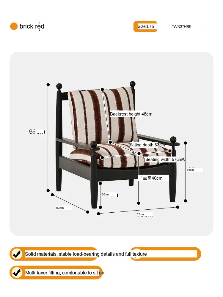 Constructed from high-quality solid wood, this armchair promises longevity and sturdiness. The wood is sourced responsibly, ensuring that your piece is not only stylish but also eco-friendly. The beautiful finish showcases the natural grain of the wood, highlighting its unique character and adding depth to the armchair’s overall appearance.