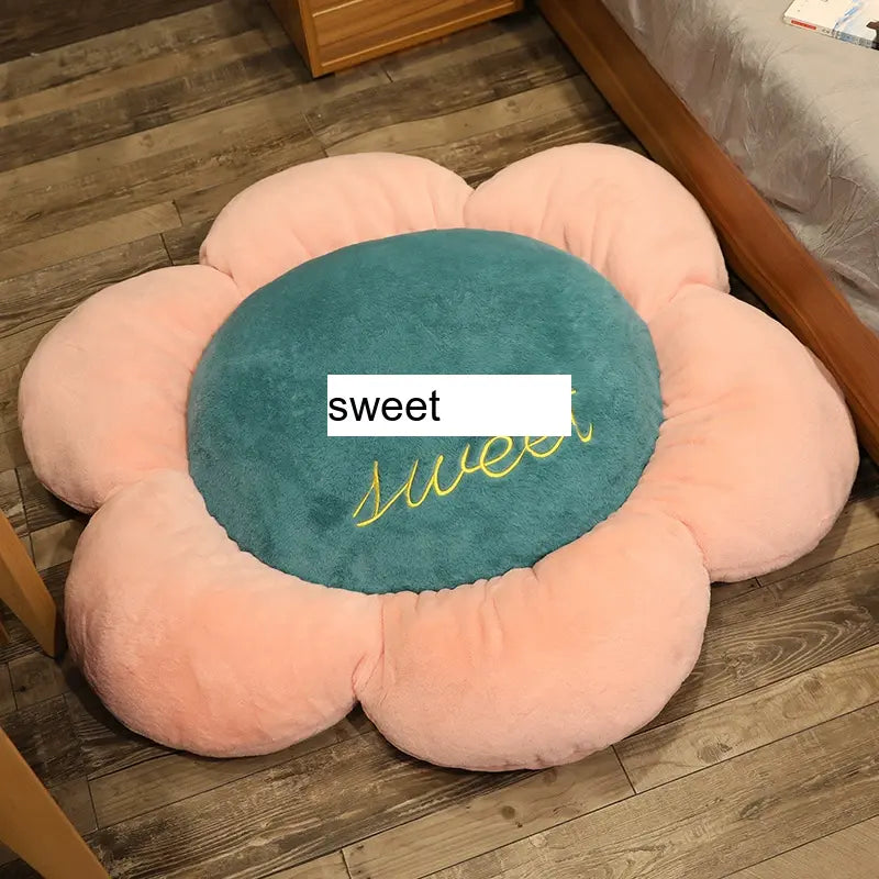 Featuring a charming floral shape with embroidered “sweet” text, this cushion brings a whimsical flair to your home. Available in relaxing pastel tones, it can easily match your decor or stand out as a playful centerpiece.