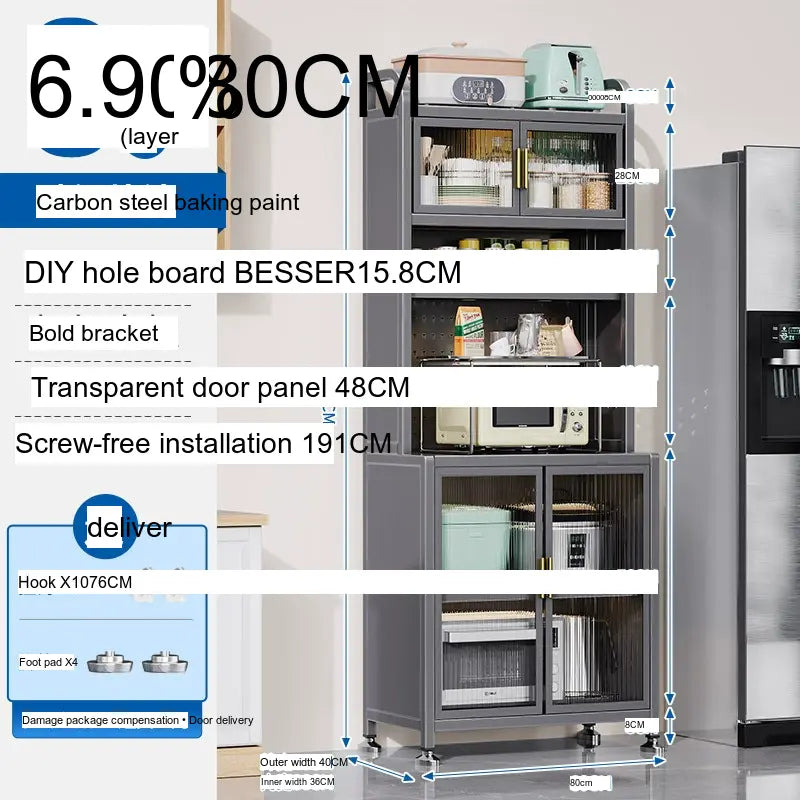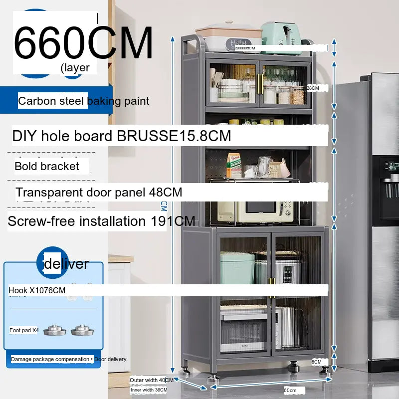 Designed to meet daily meal preparation needs, the cabinet has multiple compartments for storing a microwave, kitchenware, or even small plants. You can easily keep your kitchen organized without sacrificing style. The added insulation also keeps your food items at the right temperature, thanks to the intelligently designed structure that minimizes thermal loss.