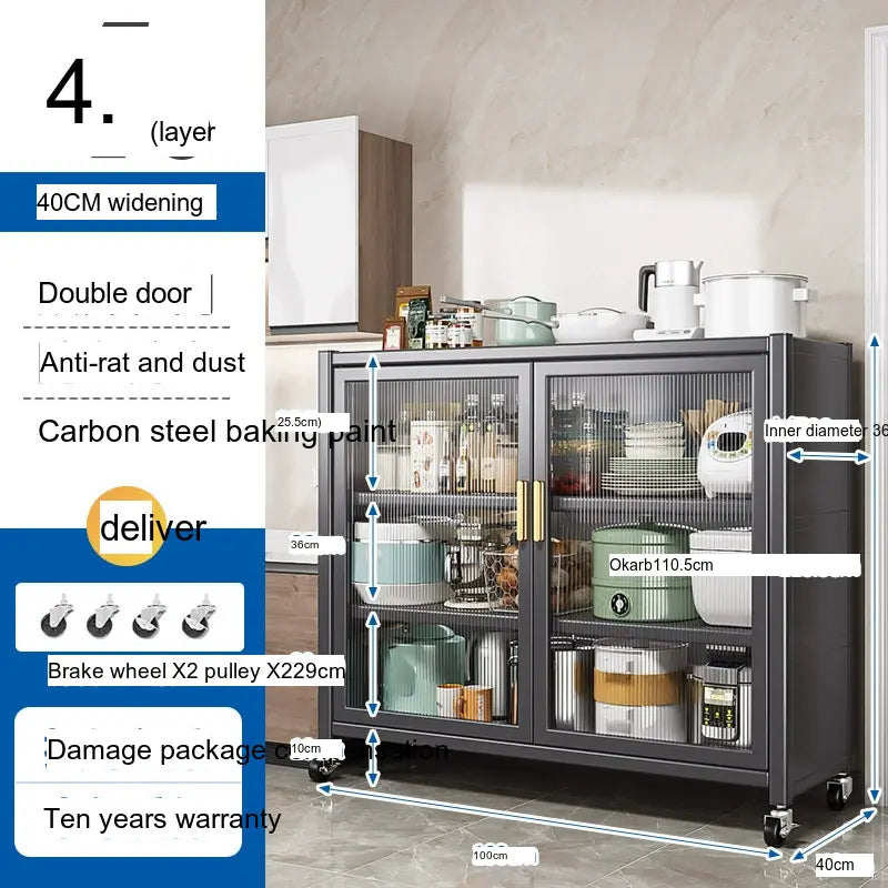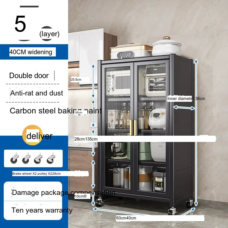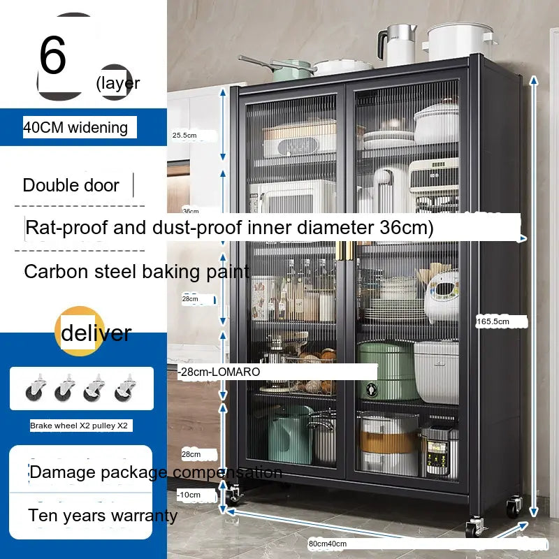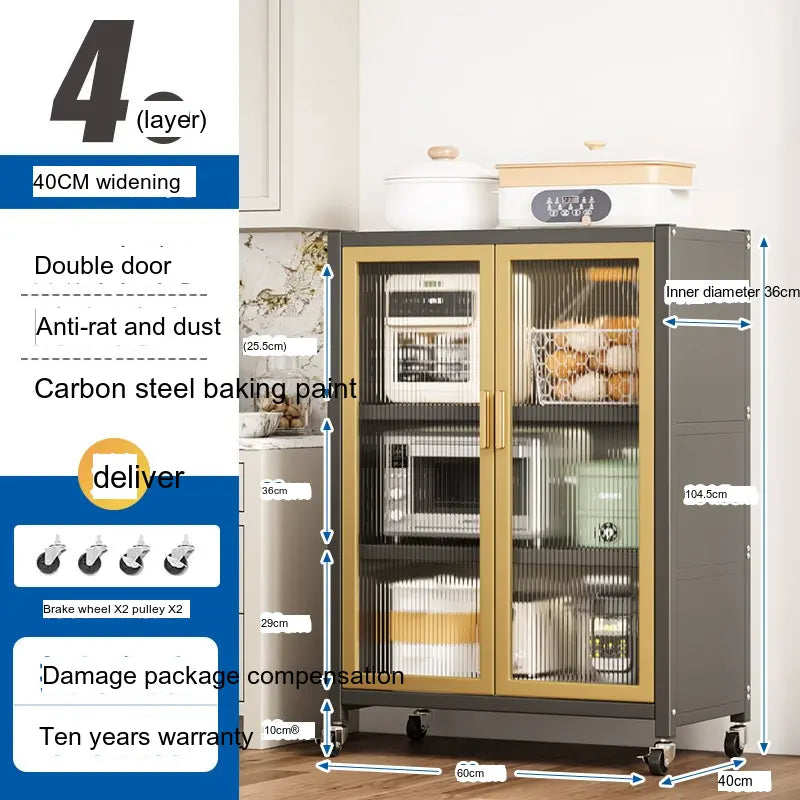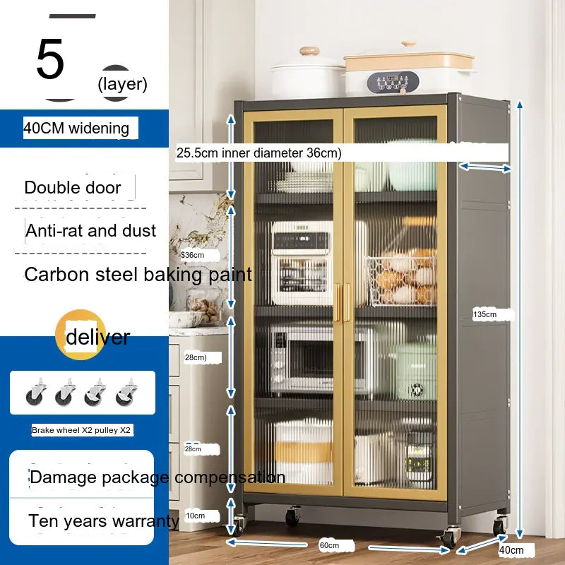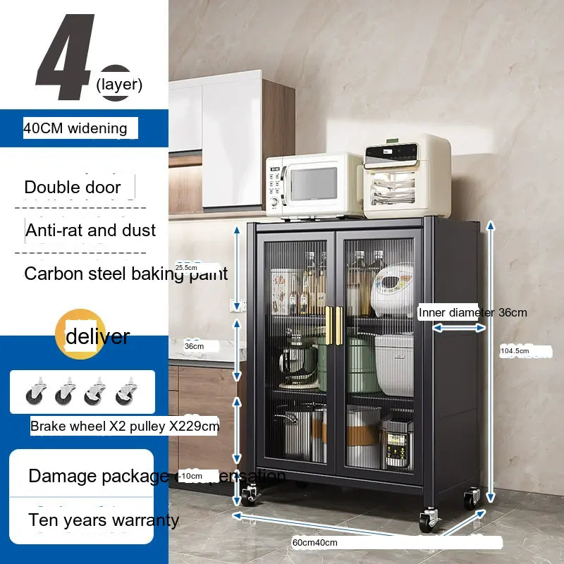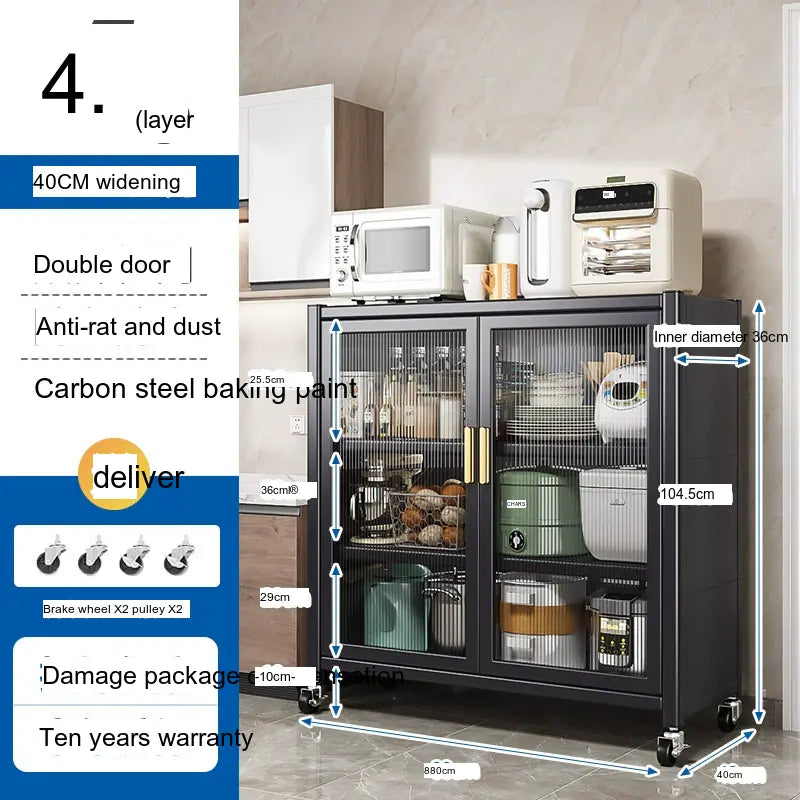 - Durable Material: Made from high-quality carbon steel, this cabinet promises longevity and superior load-bearing capacity. Its robust structure can support up to 500 kg, making it sturdy enough for large kitchen appliances.