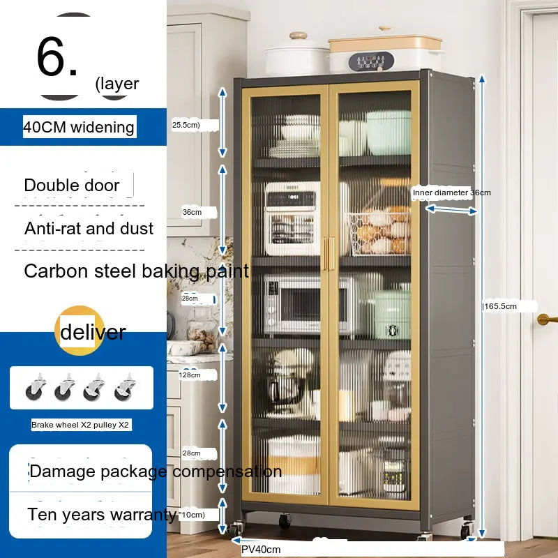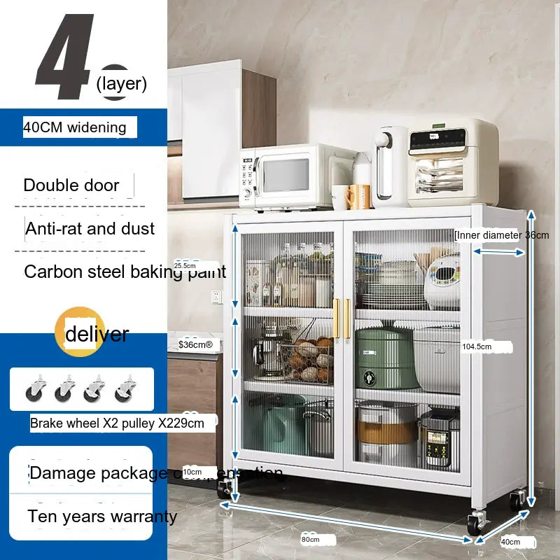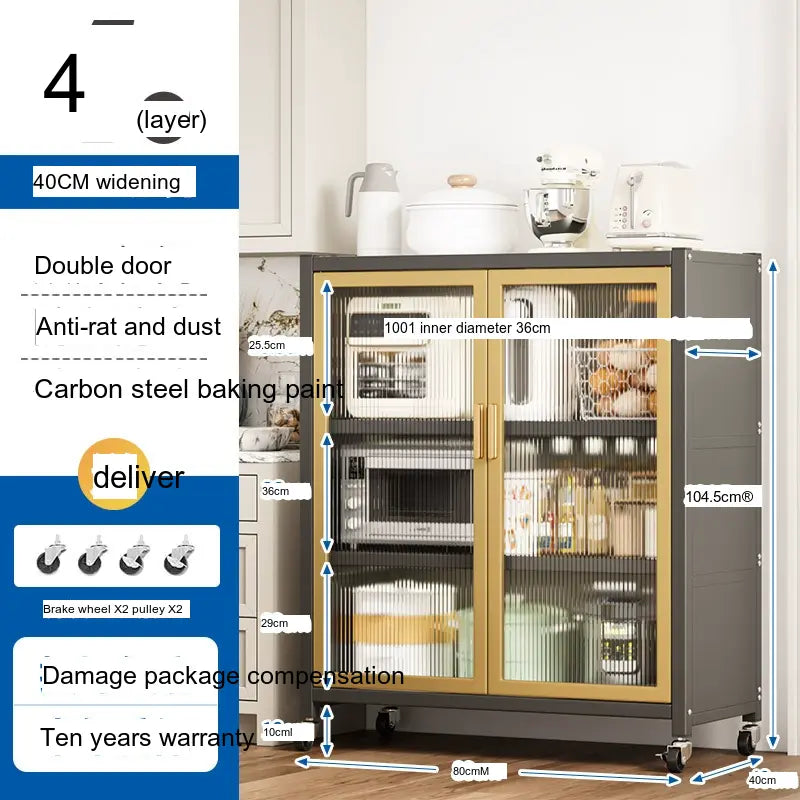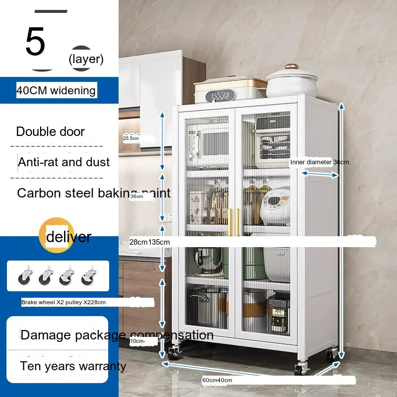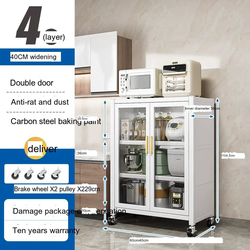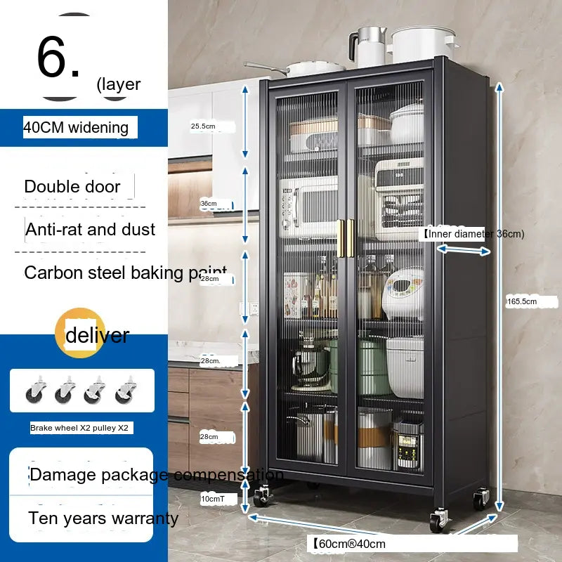 - Durable Material: Made from high-quality carbon steel, this cabinet promises longevity and superior load-bearing capacity. Its robust structure can support up to 500 kg, making it sturdy enough for large kitchen appliances.
