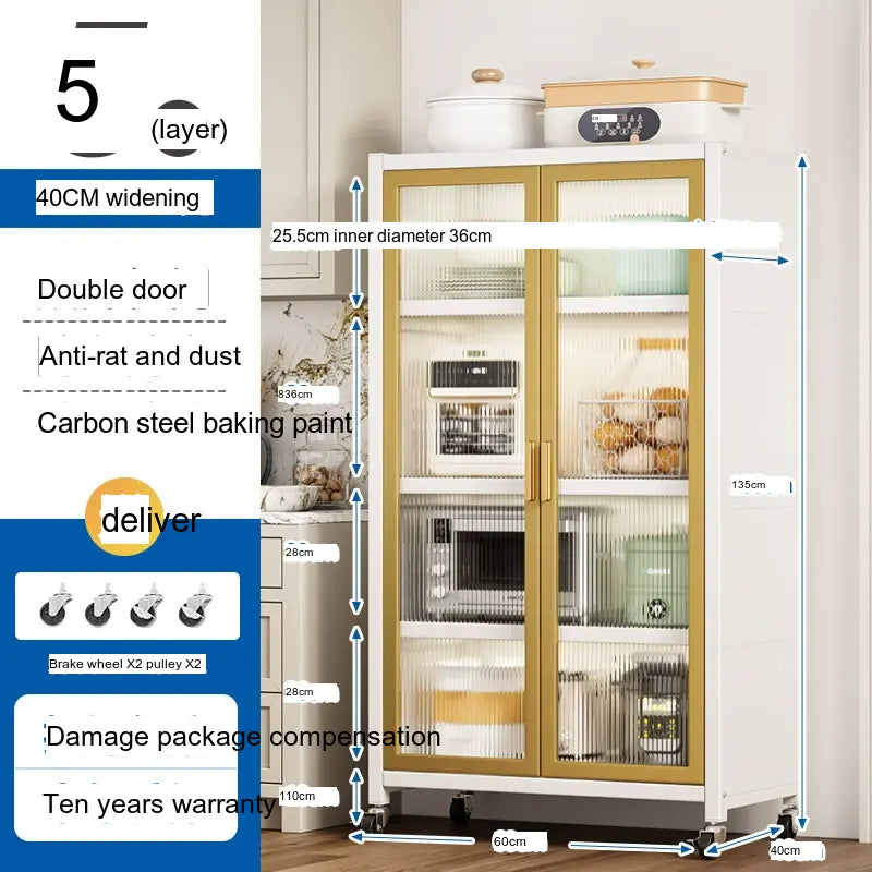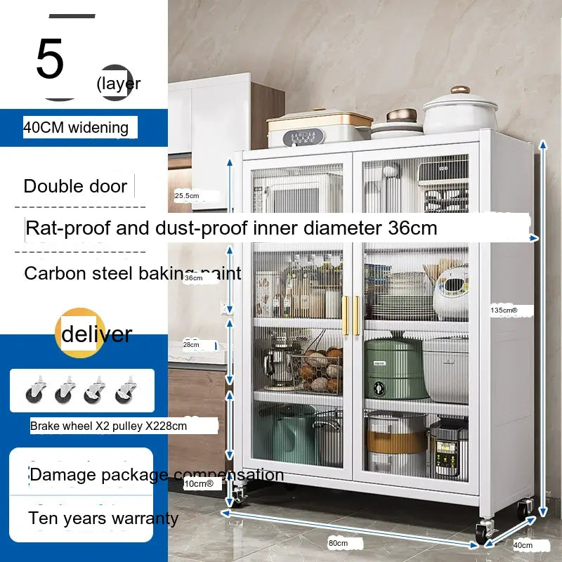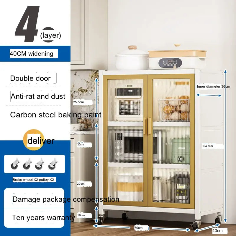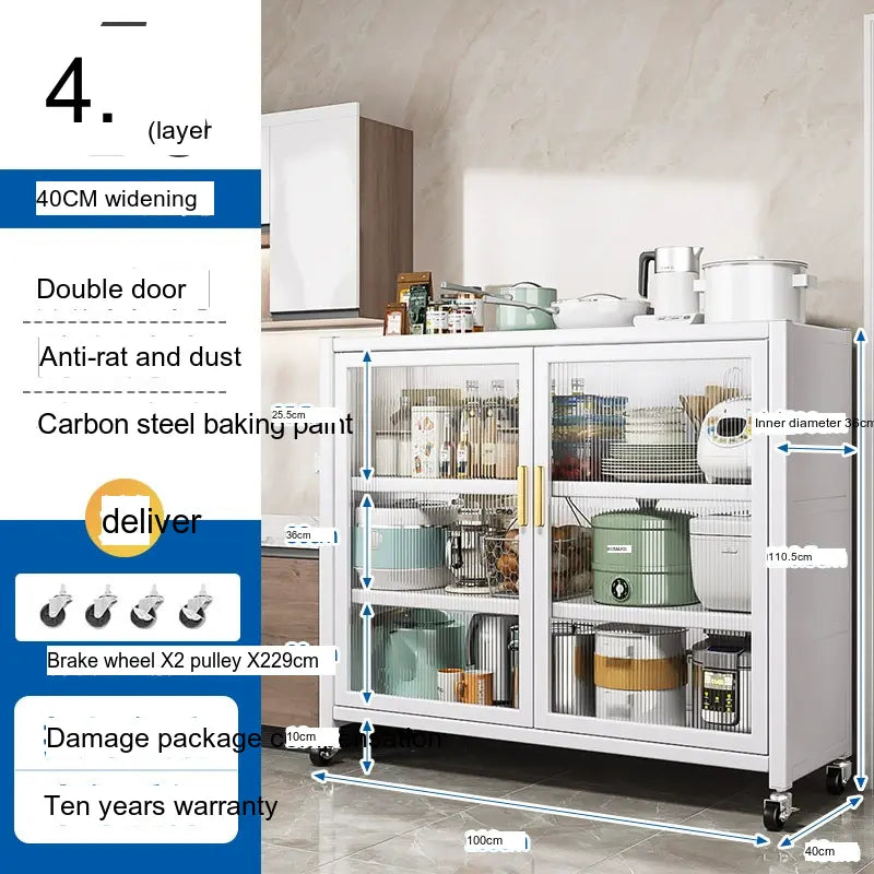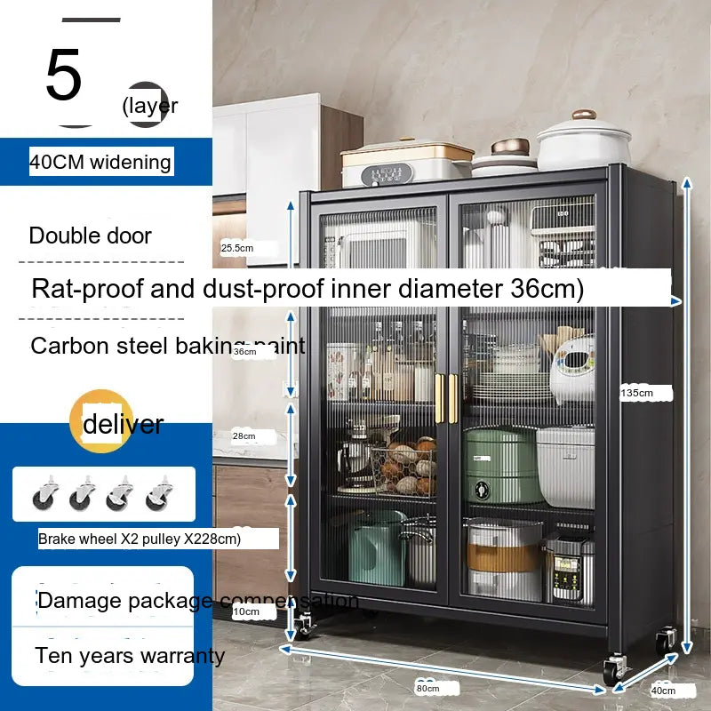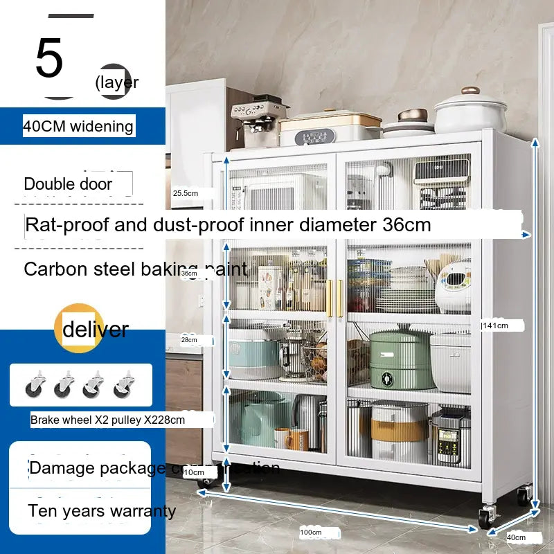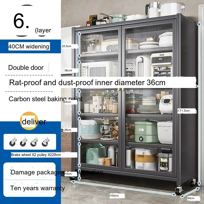 - Durable Material: Made from high-quality carbon steel, this cabinet promises longevity and superior load-bearing capacity. Its robust structure can support up to 500 kg, making it sturdy enough for large kitchen appliances.