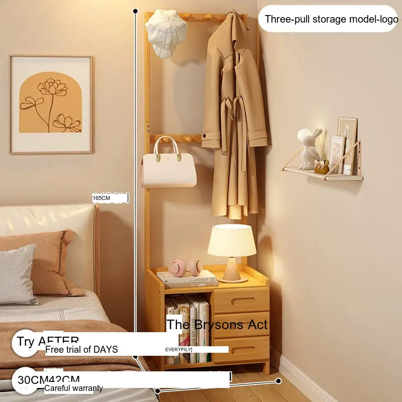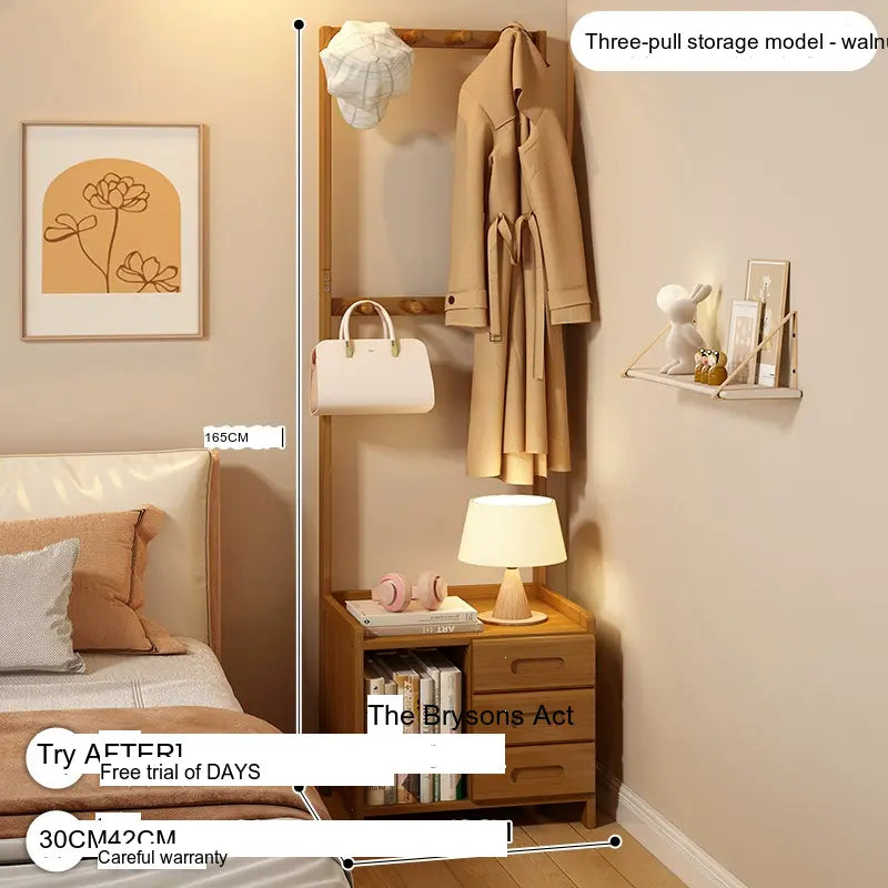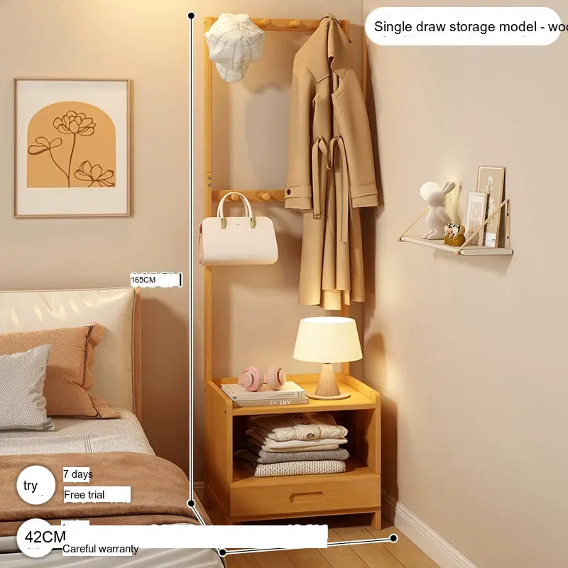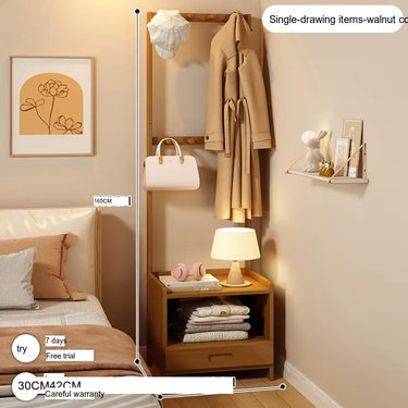 • Single-pull storage model with clothes hanger in walnut or log wood color