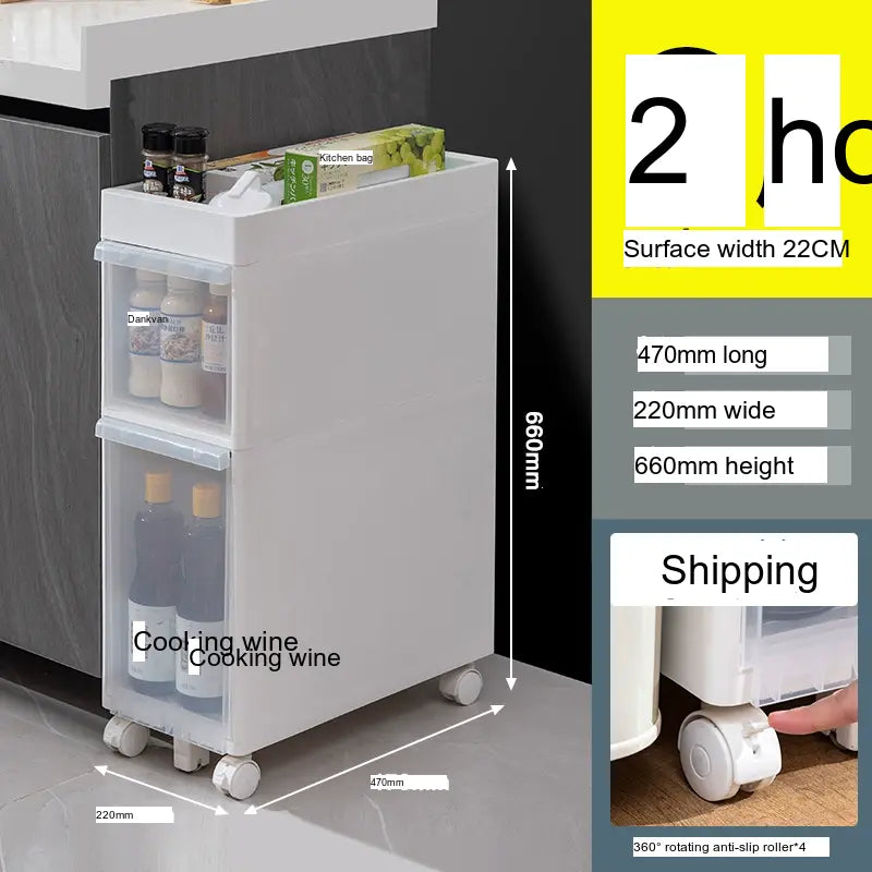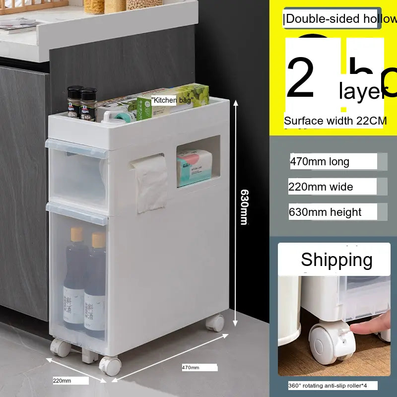 - 2-layer cabinet with mobility-enhancing wheels - ideal for tight spaces.