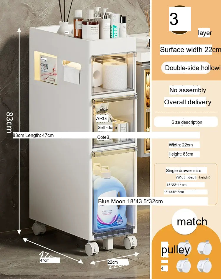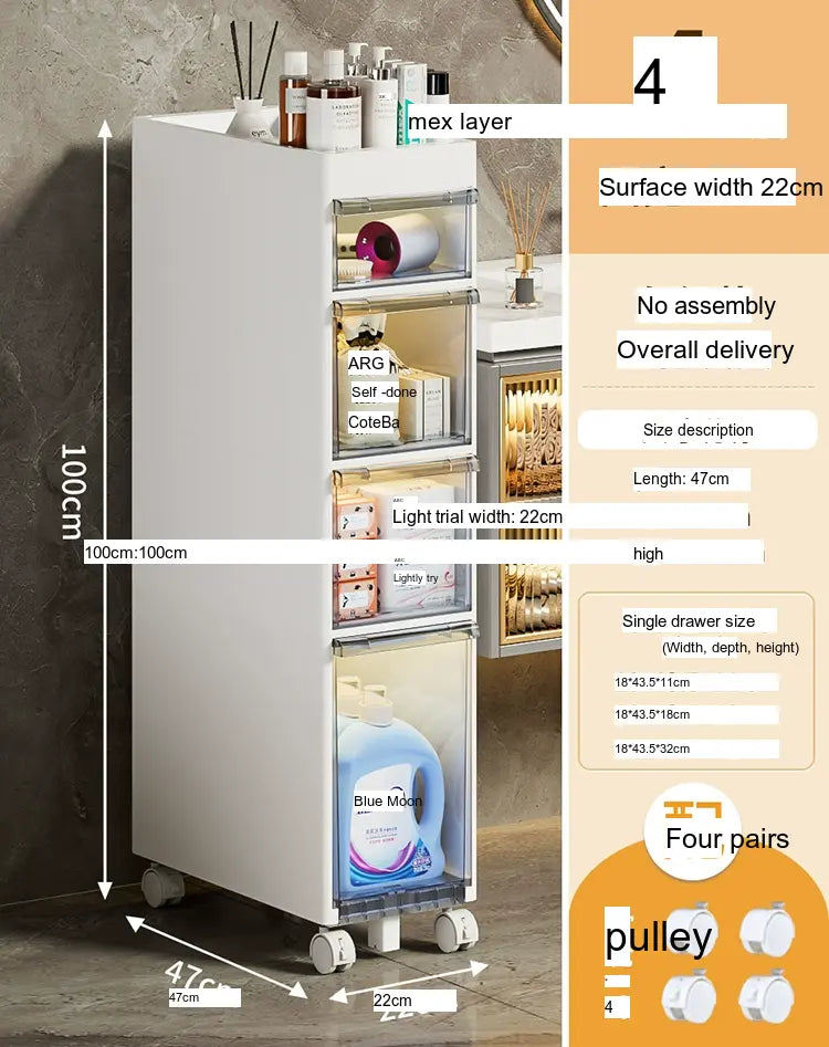 Constructed from premium-quality plastic, the cabinet ensures durability for everyday use. The transparent drawers allow you to easily identify items at a glance, while the smooth slide-out design ensures effortless access. The cabinet is lightweight yet sturdy, designed to withstand daily use.