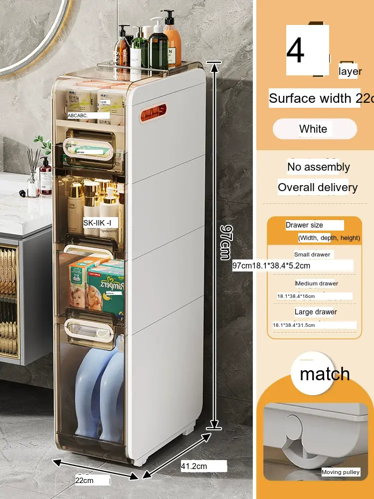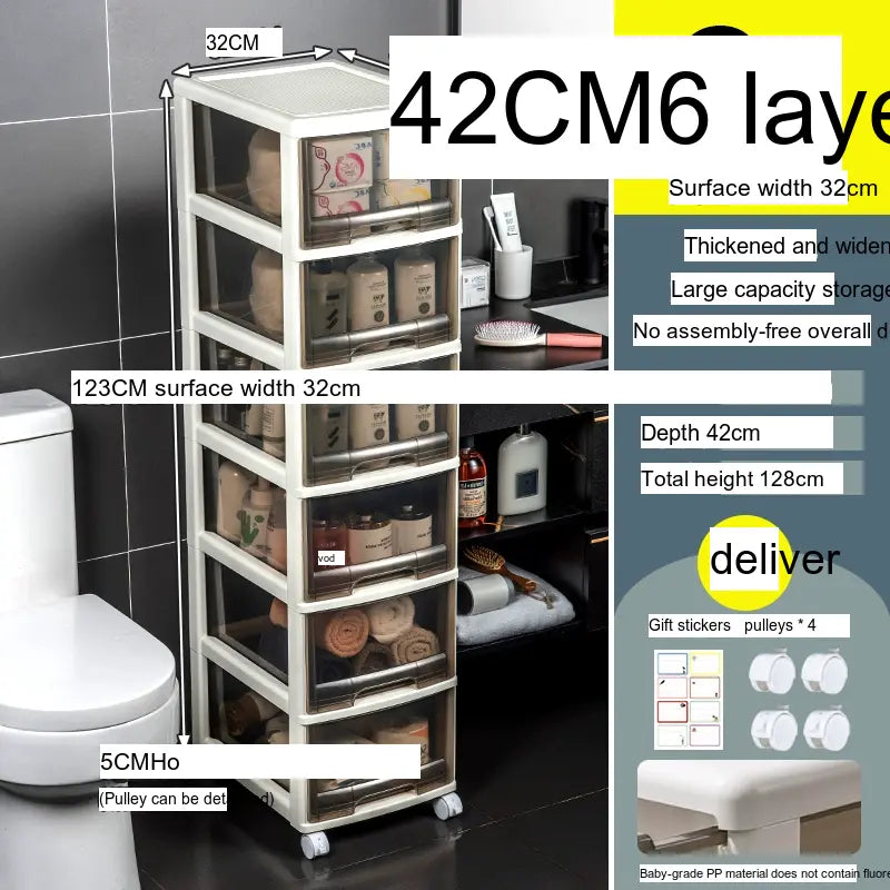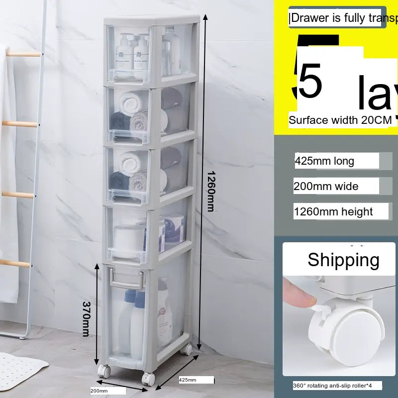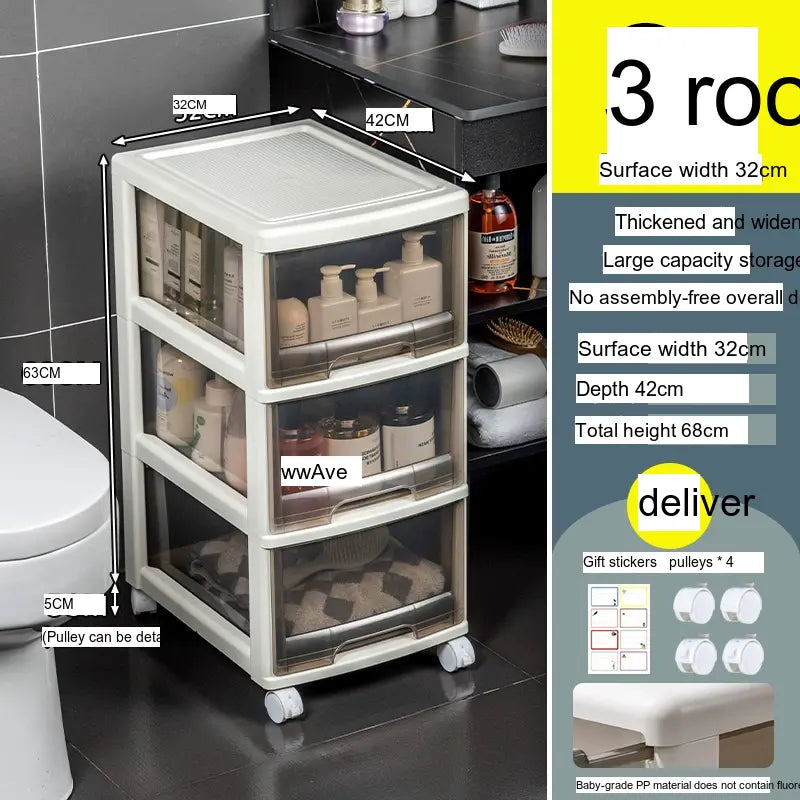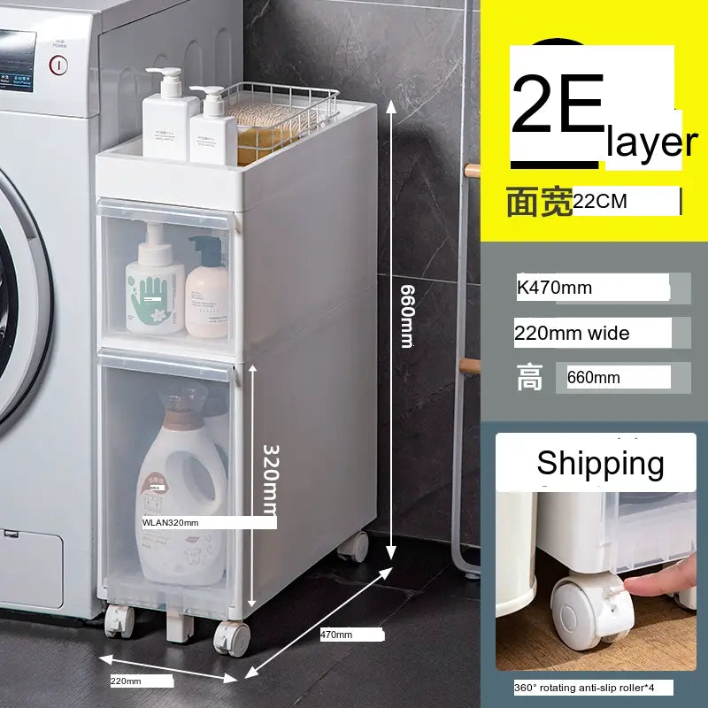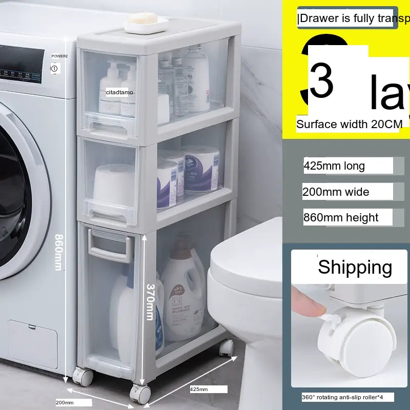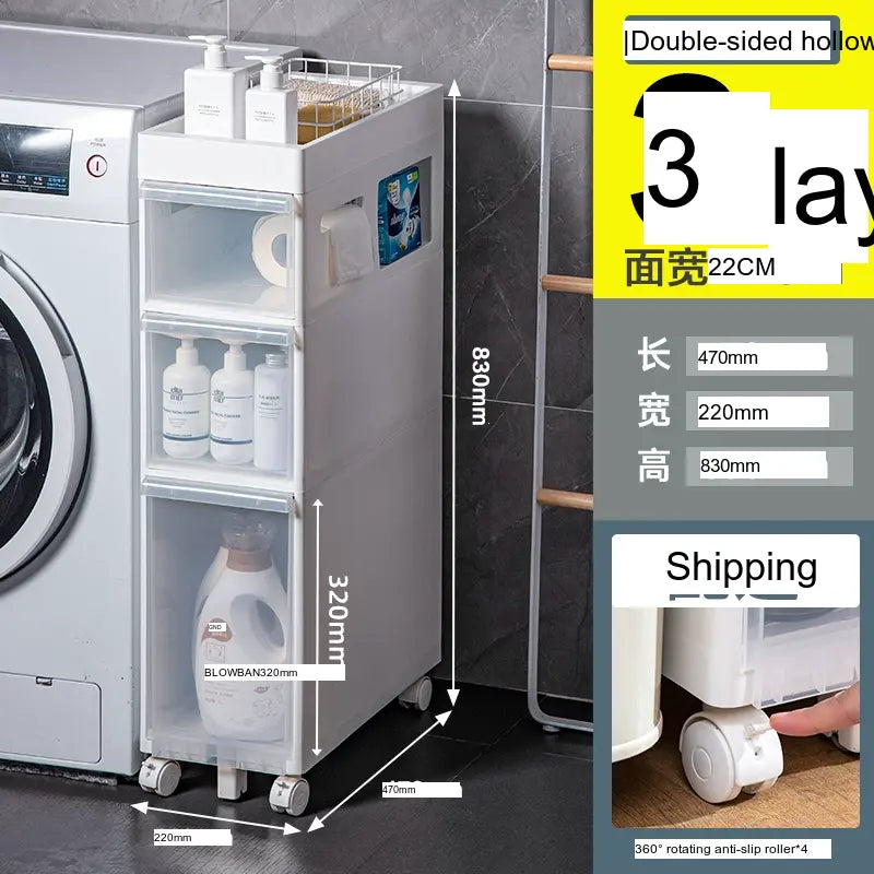 The JEKOJEKO rack features multiple layers, with configurations available in 2-layer, 3-layer, 4-layer, and even 5-layer options. Whether you opt for a 2-layer side hollow pulley or the more spacious 5-layer transparent cabinet, each design comes equipped with smooth-rolling pulleys or a universal wheel system for easy mobility. The clever designs maximize your space while maintaining an organized look.