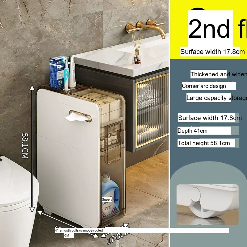 This storage rack is not just about looks; it’s incredibly functional. With a variety of storage compartments, you can easily organize cleaning supplies, toiletries, or any other bathroom necessities. The side opening design makes it easy to retrieve your items without hassle, ensuring convenience during your daily routines. High bottles of laundry detergent, extra toilet papers, or your skincare essentials — all can be neatly housed within easy reach.
