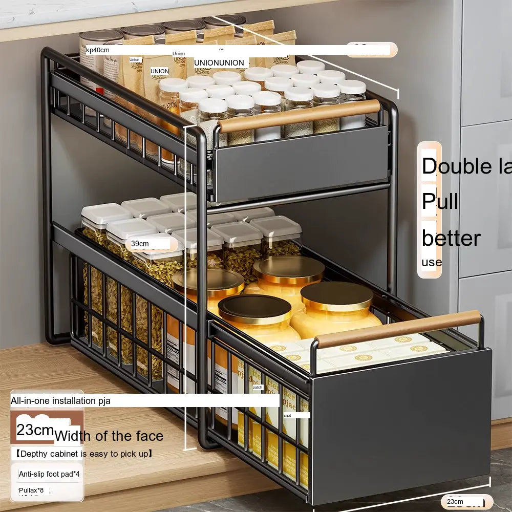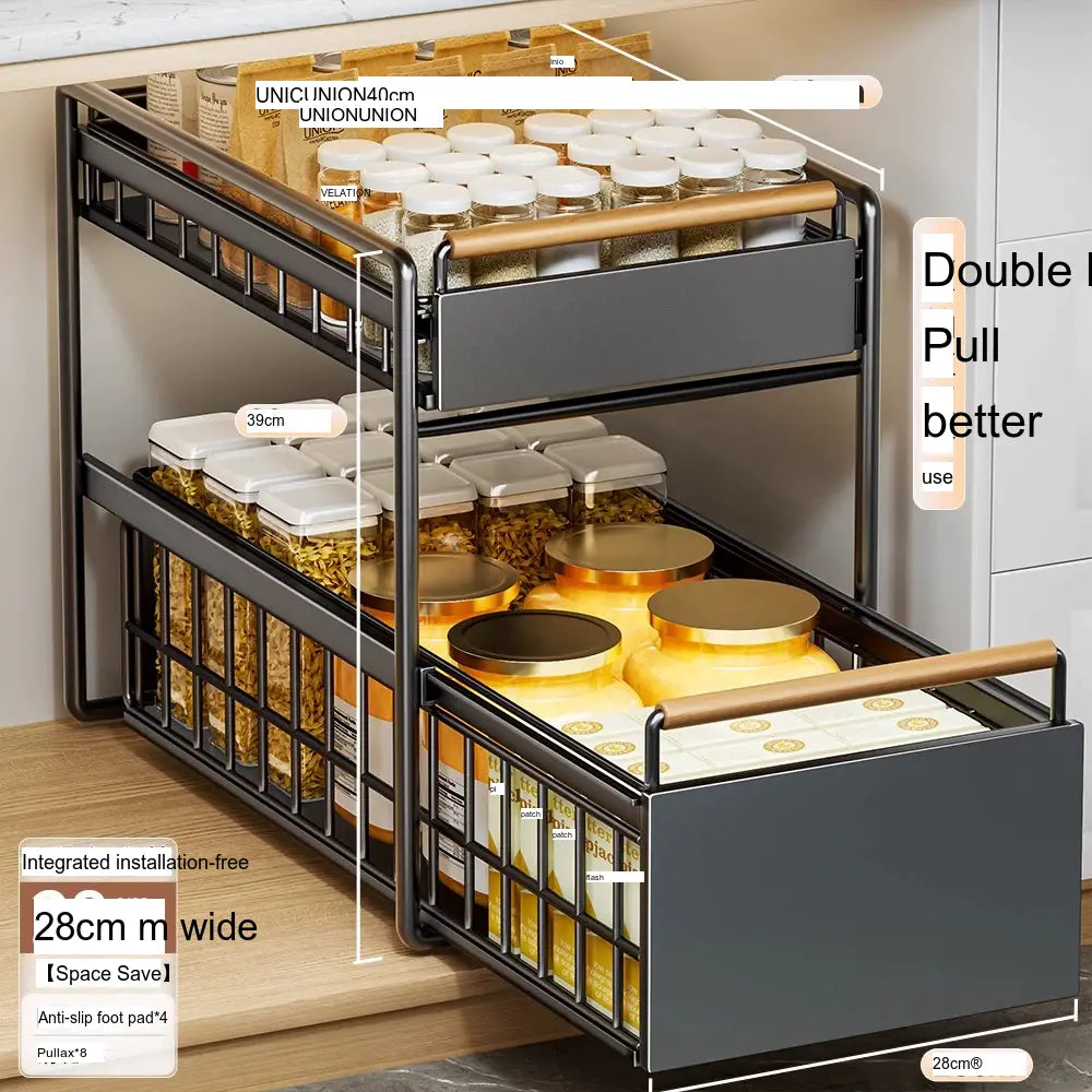 - Non-Slip Feet: The organizer comes equipped with anti-slip foot pads, ensuring that it remains stable on your kitchen countertop or cabinet while you pull items in and out.