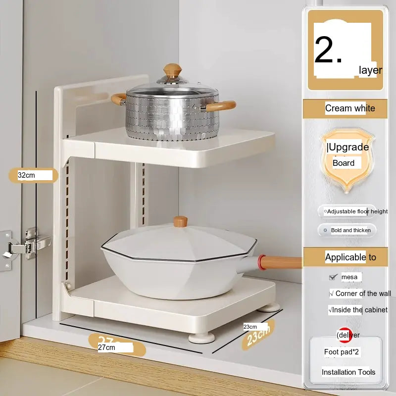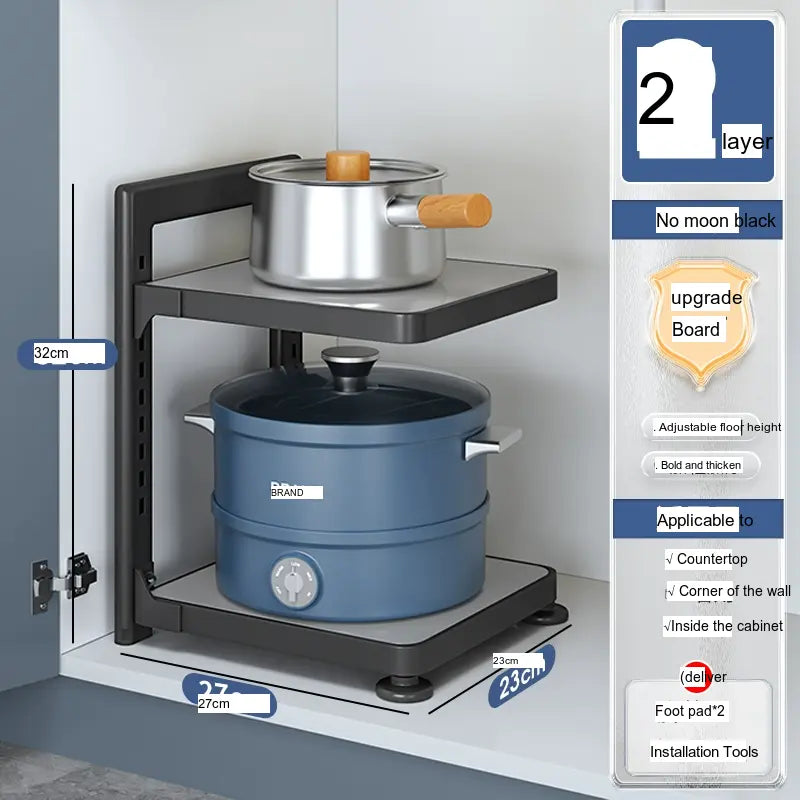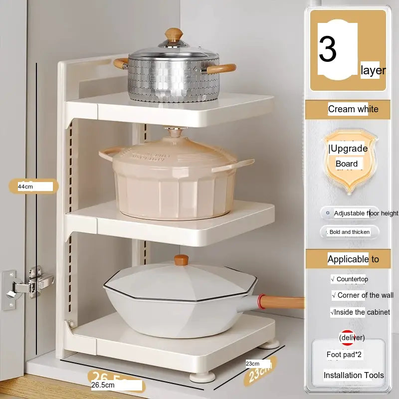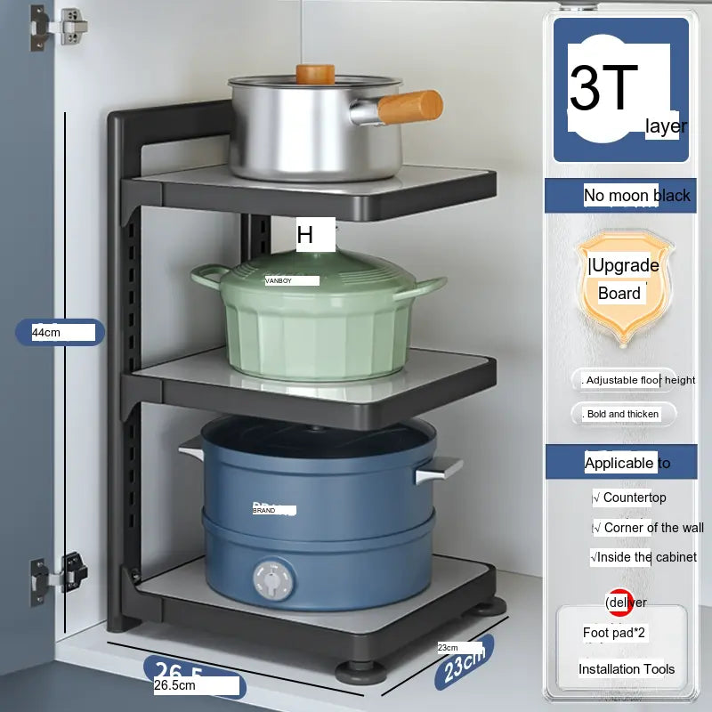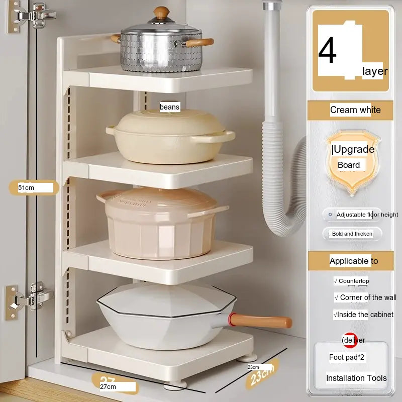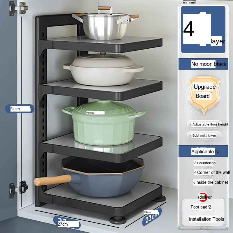 - Versatile Design: Available in multiple configurations – choose from 2, 3, or 4 layers depending on your storage needs. The adjustable height feature allows you to customize each layer to fit pots, pans, and other cookware of varying sizes.