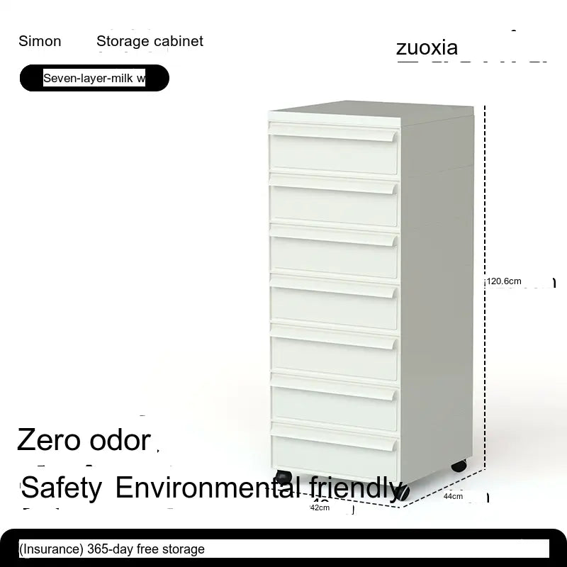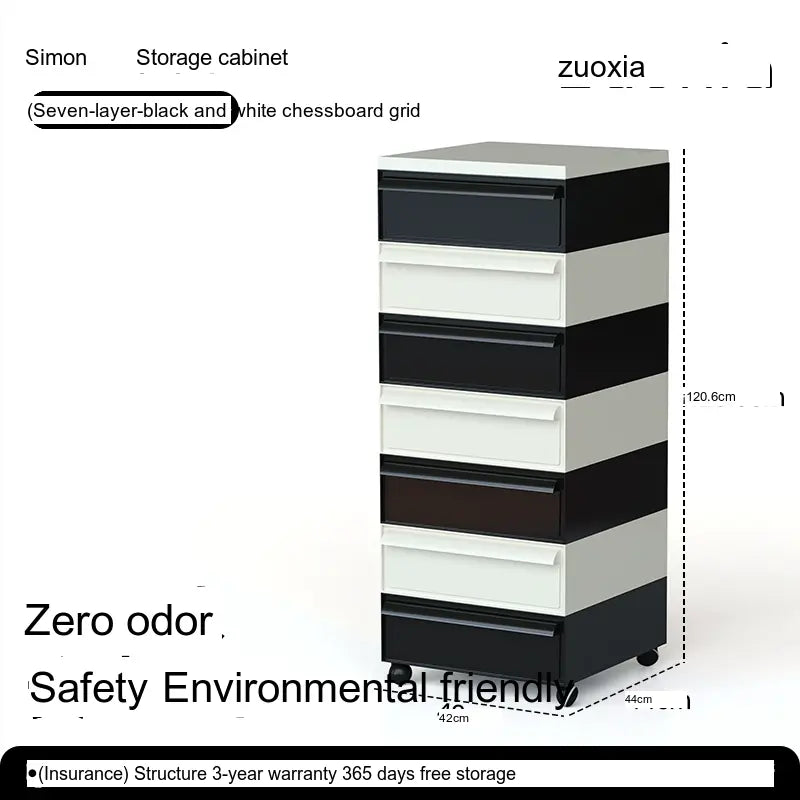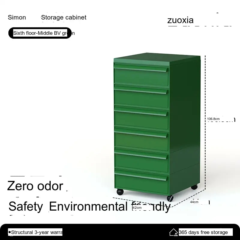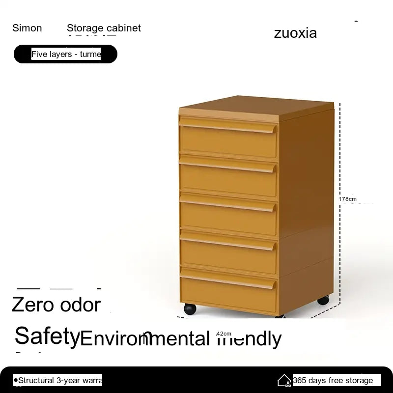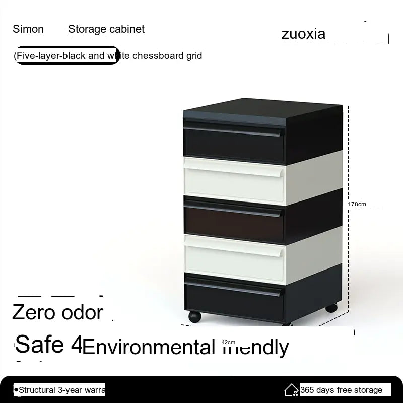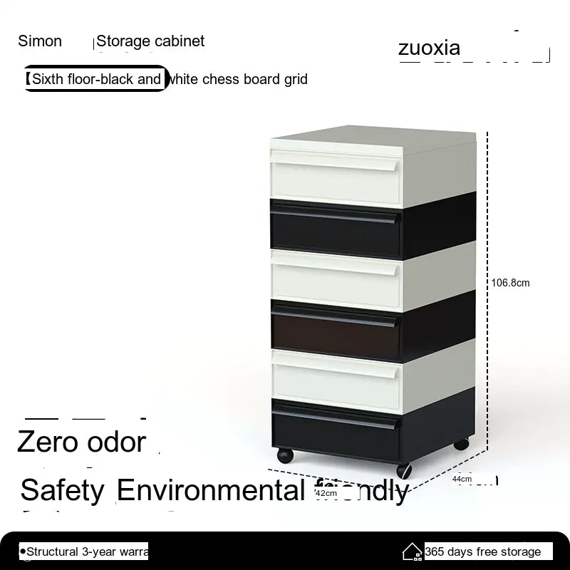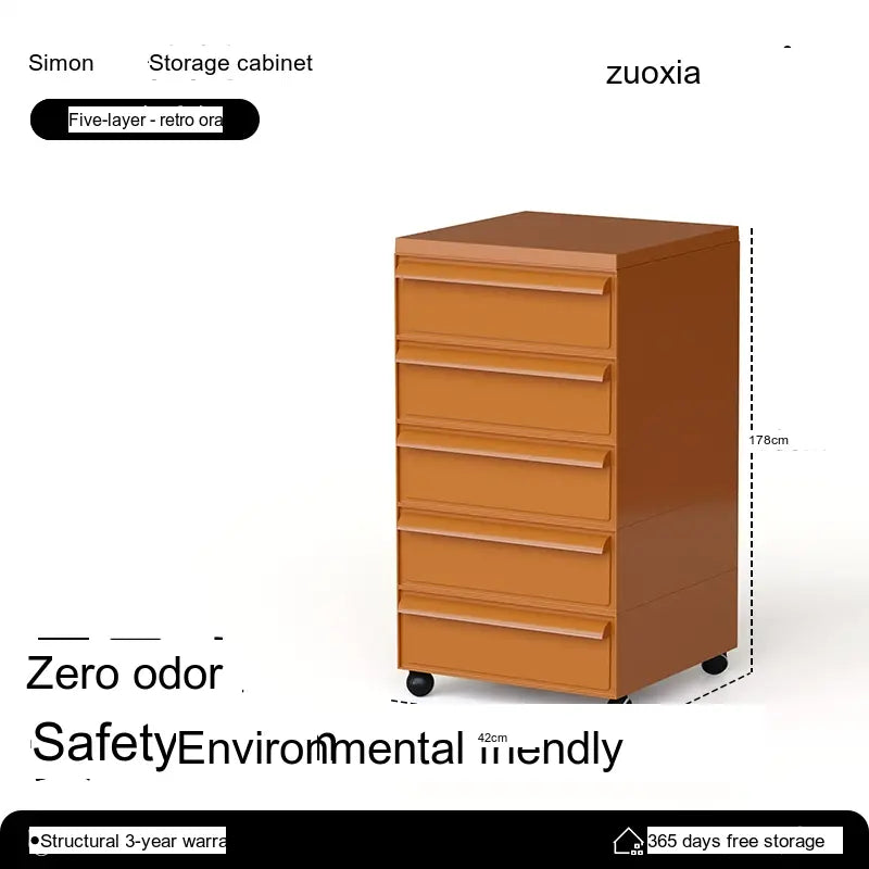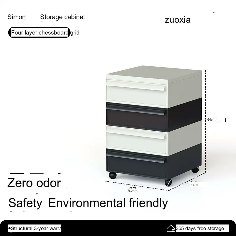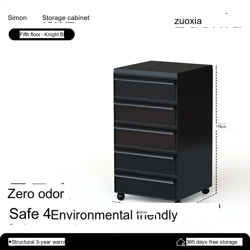 The Orion Storage Cabinet from LOWER LEFT is a compact, modular drawer unit engineered for everyday organization. Crafted from high-quality engineered plastic with reinforced metal components in key areas, this cabinet is lightweight yet sturdy. Its clean, modern silhouette fits neatly beside a desk, sofa, or bed while providing reliable, space-saving storage.