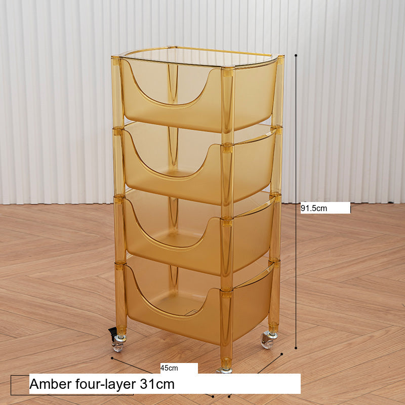 The storage cart incorporates high-quality PC material that is not only resistant to scratches and heat but also safe for direct contact with food, making it usable for various purposes—from holding clothes to kitchen supplies. The diamond-polished finish gives a clear and appealing look, enhancing your room's aesthetic.