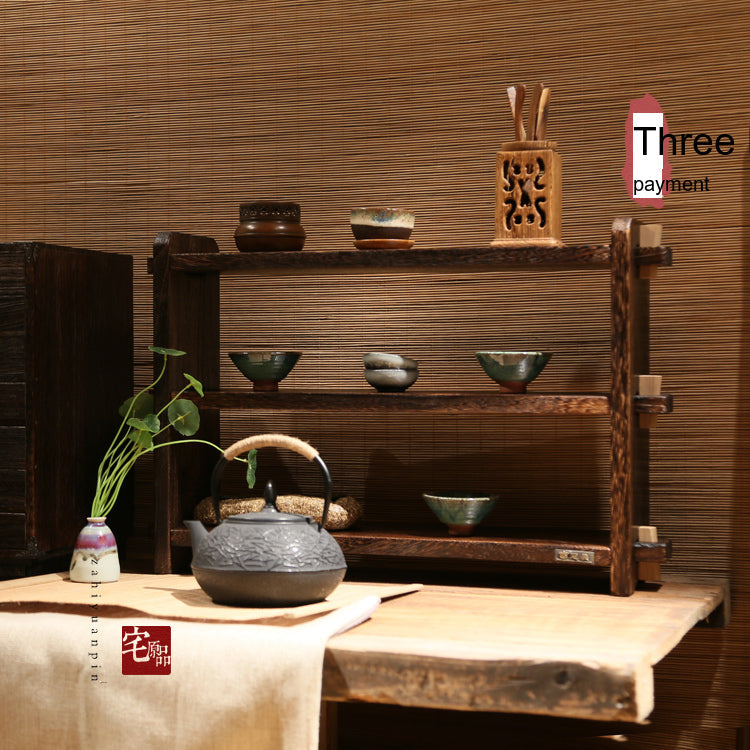 PAULOWNIA Takamatsu Multi-Layer Rustic Solid Wood Pavilion Display Rack