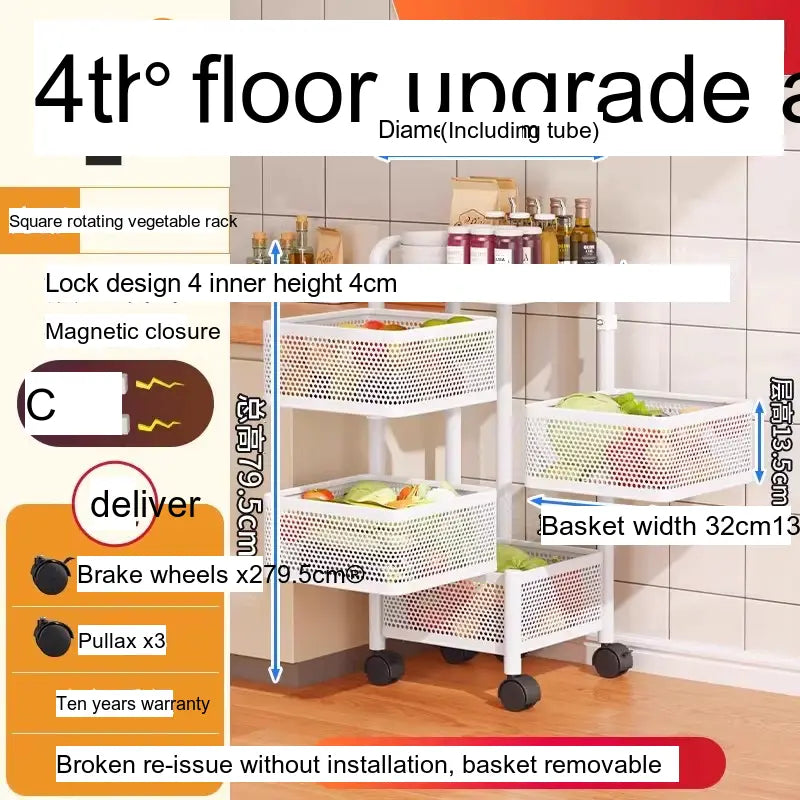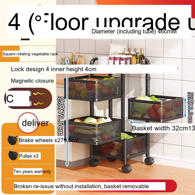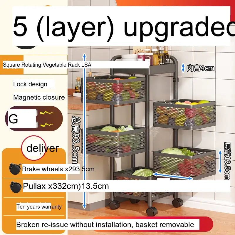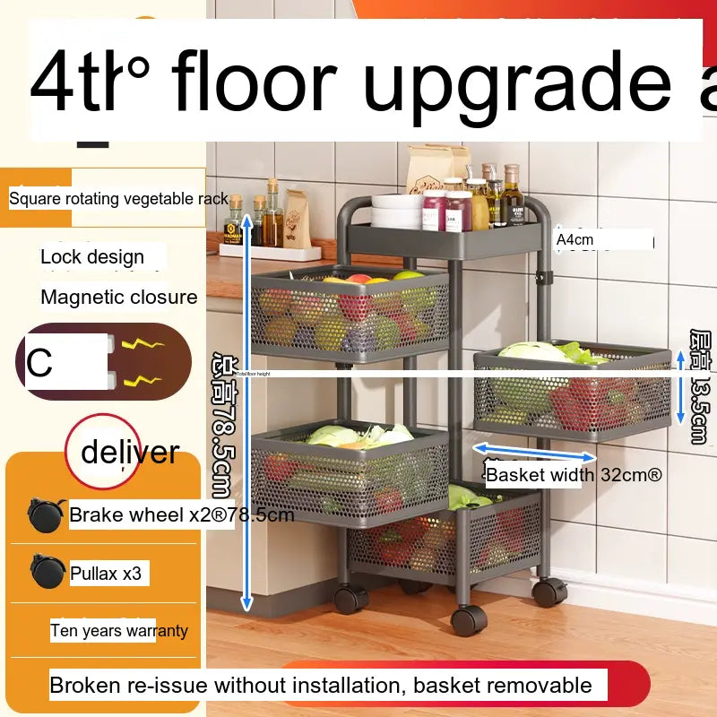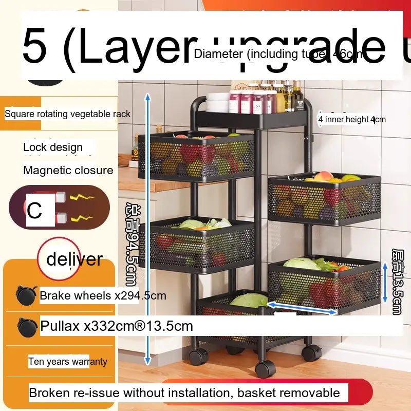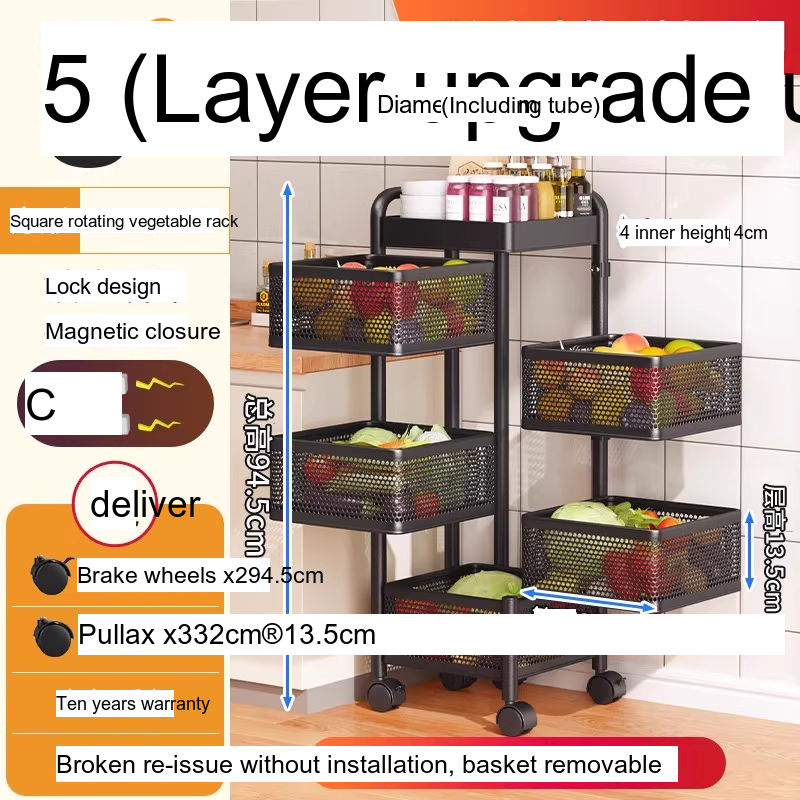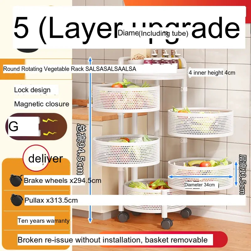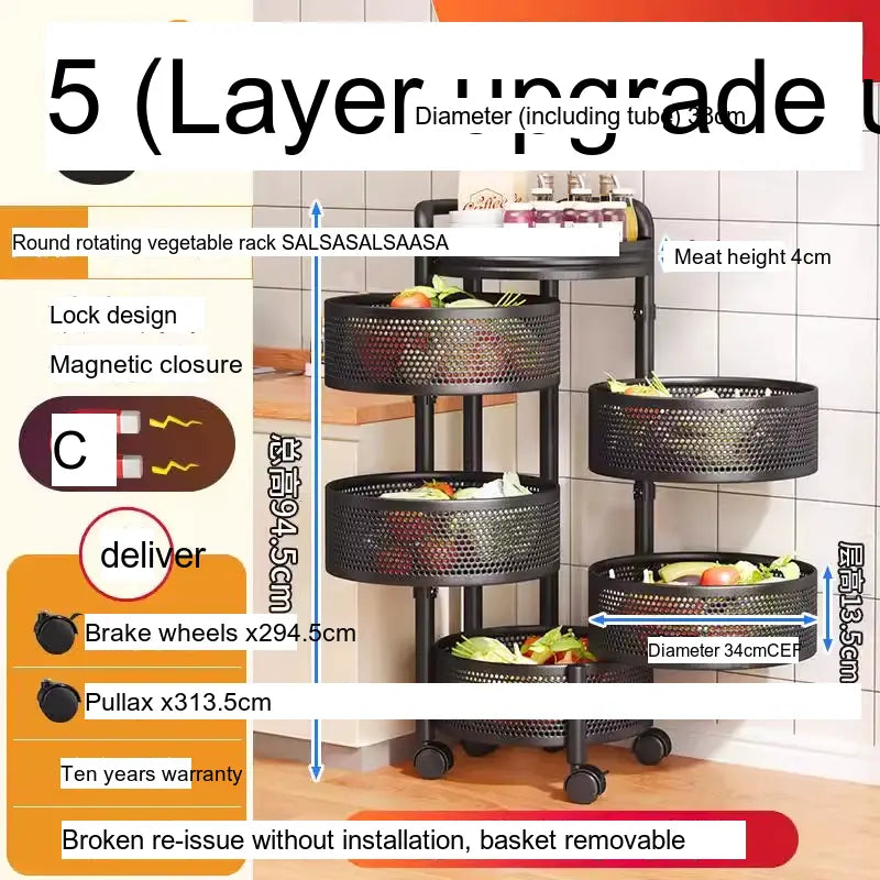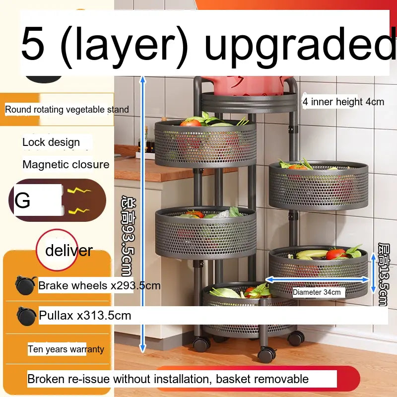 With multiple layers, including options for up to 6-layer round designs, this vegetable rack is designed for versatile storage. Its wide thickened mesh baskets allow for ample space, providing a great storage function that effectively maximizes your kitchen area. The reinforced four-column design ensures stability, allowing you to stack a variety of items without worrying about tipping or falling. Users have indicated that this product has a substantial load-bearing capacity, making it suitable for heavier items, securely holding everything from large produce to pantry staples.