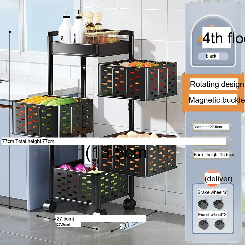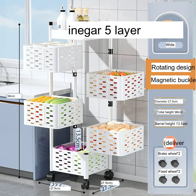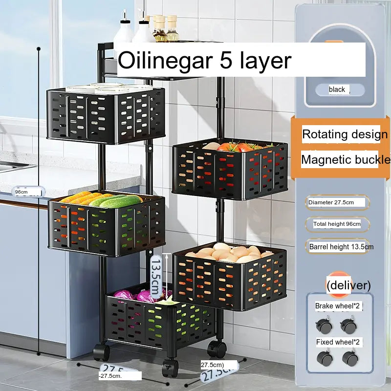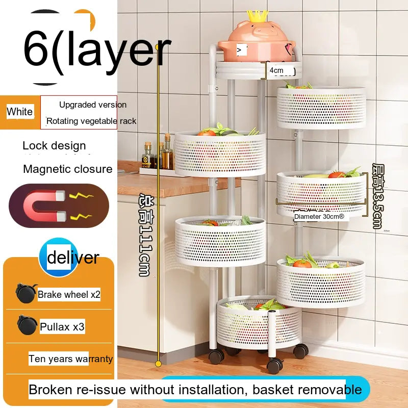 Transform your kitchen storage with the SHUAISHI Mariposa Multi-Function Rotating Vegetables Shelf. This stylish and versatile vegetable rack combines modern Nordic aesthetics with superior functionality, making it the perfect addition to any kitchen or pantry setup. Whether you're storing vegetables, fruits, or other kitchen essentials, this rack offers an innovative solution to keep your items organized and accessible.