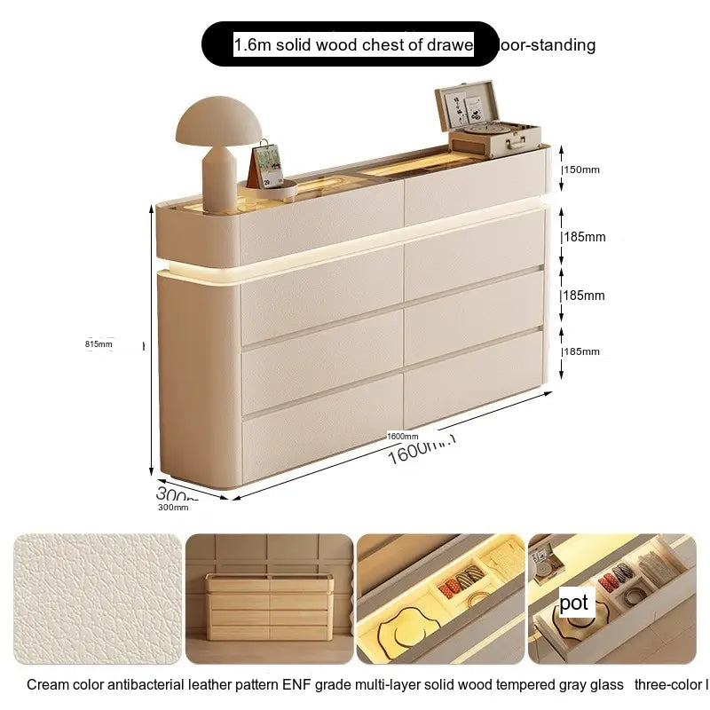 The cabinet is also innovatively designed with an LED touch light strip, providing adjustable three-color lighting options: cold white, natural light, and warm light. This feature allows you to create the perfect ambiance for your bedroom, enhancing your evening rituals and adding a touch of luxury to your space.