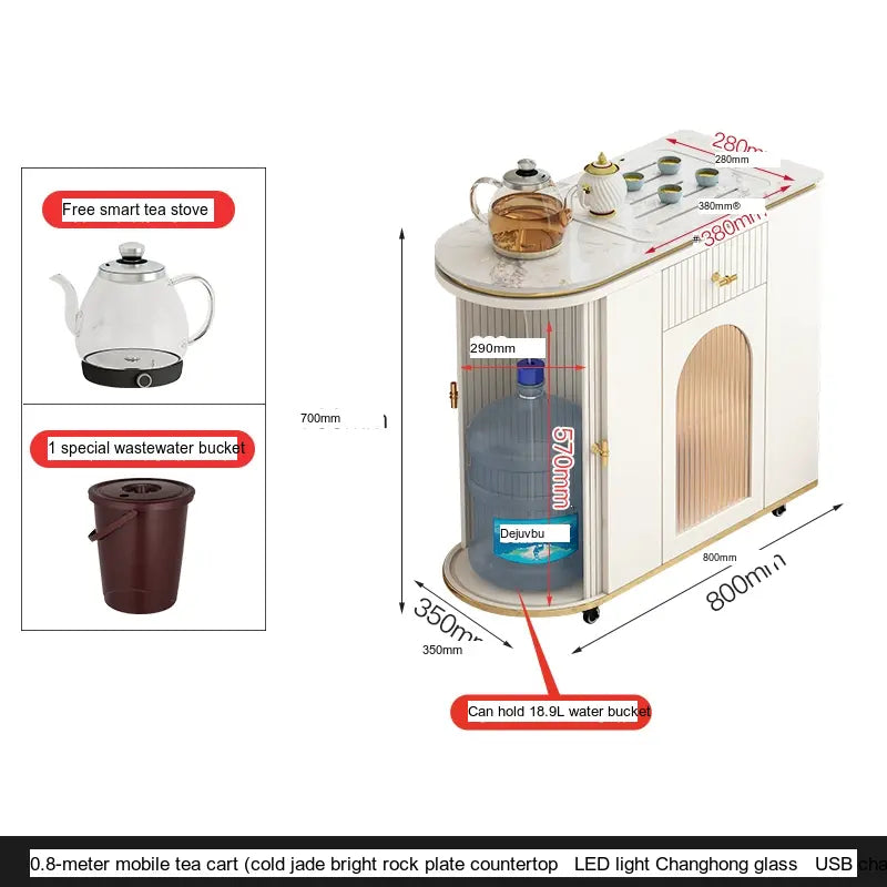 This tea cart features innovative storage solutions that go beyond aesthetics. With multiple compartments, you can easily store your favorite tea sets, snacks, and even your favorite reading materials. The inclusion of a roller blind door not only keeps your items dust-free but adds to the overall sleek and sophisticated look of the cart. Functionality meets style as this tea cart caters to your organizational needs seamlessly.