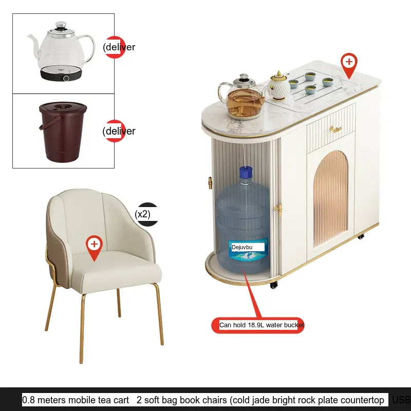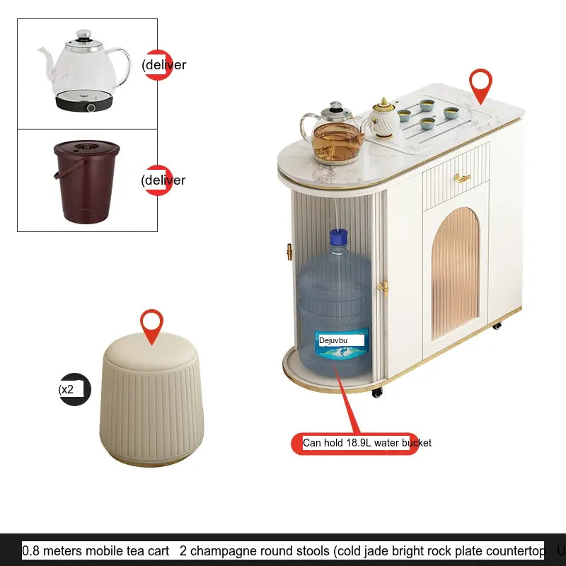 The ZOSTON Atalanta tea cart showcases a light luxury aesthetic, integrating premium materials to create a visually stunning piece. The robust stone slab top, made of cold jade rock, embodies sophistication while offering practical benefits. Its heat resistance and stain-resistant properties ensure that maintaining the cart is a breeze, making it an ideal choice for any modern home looking for durability combined with elegance.