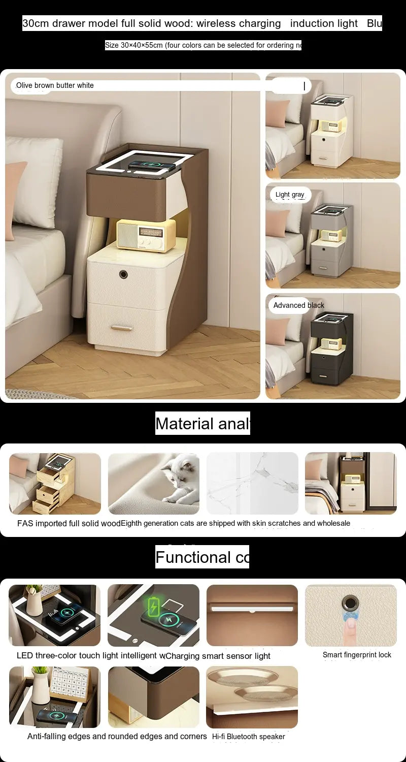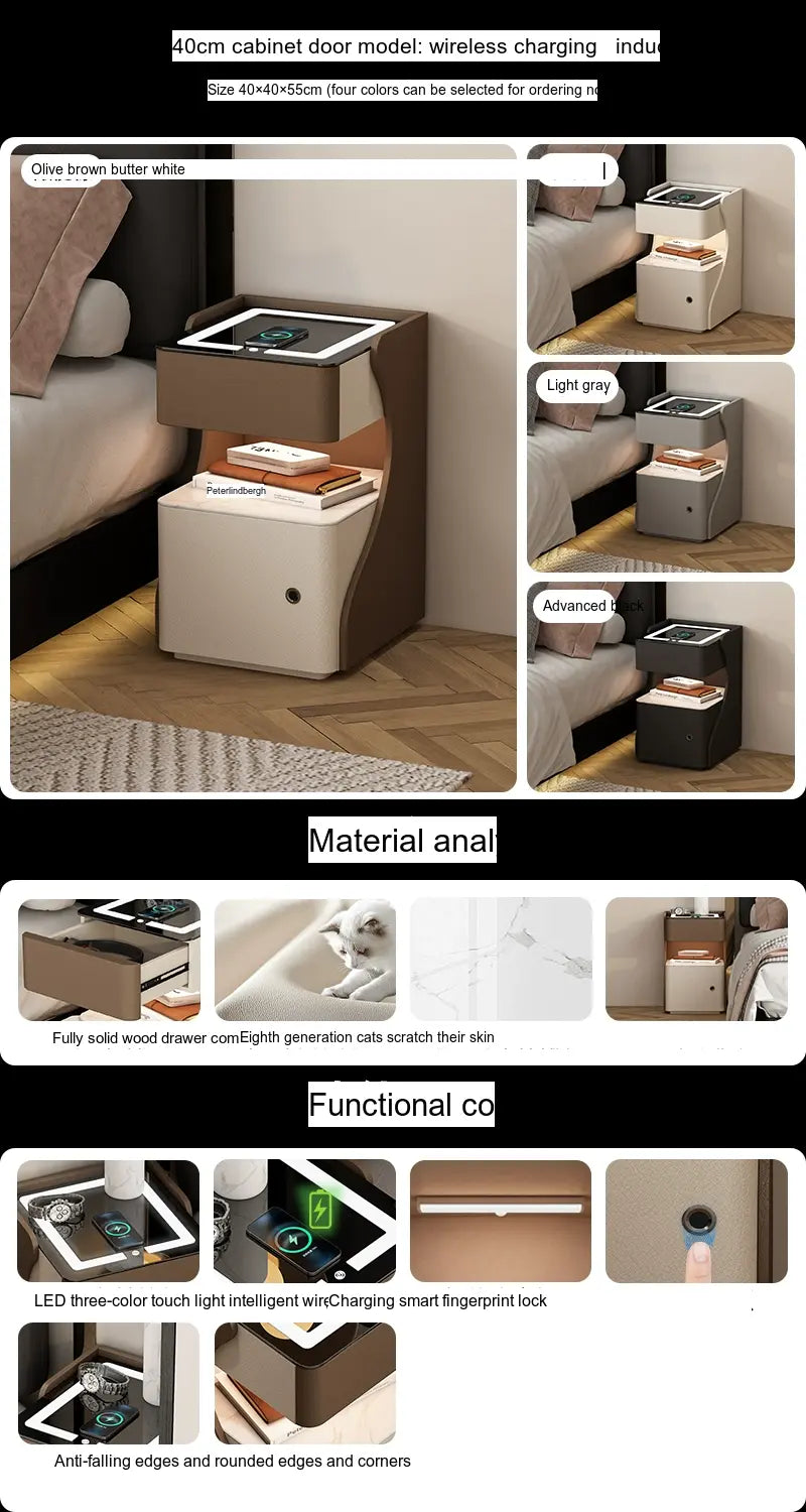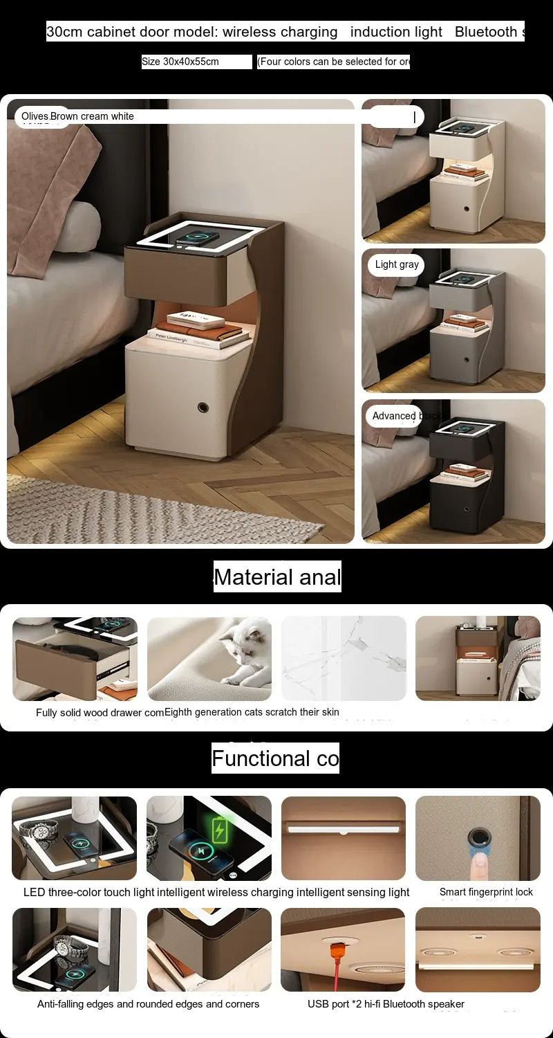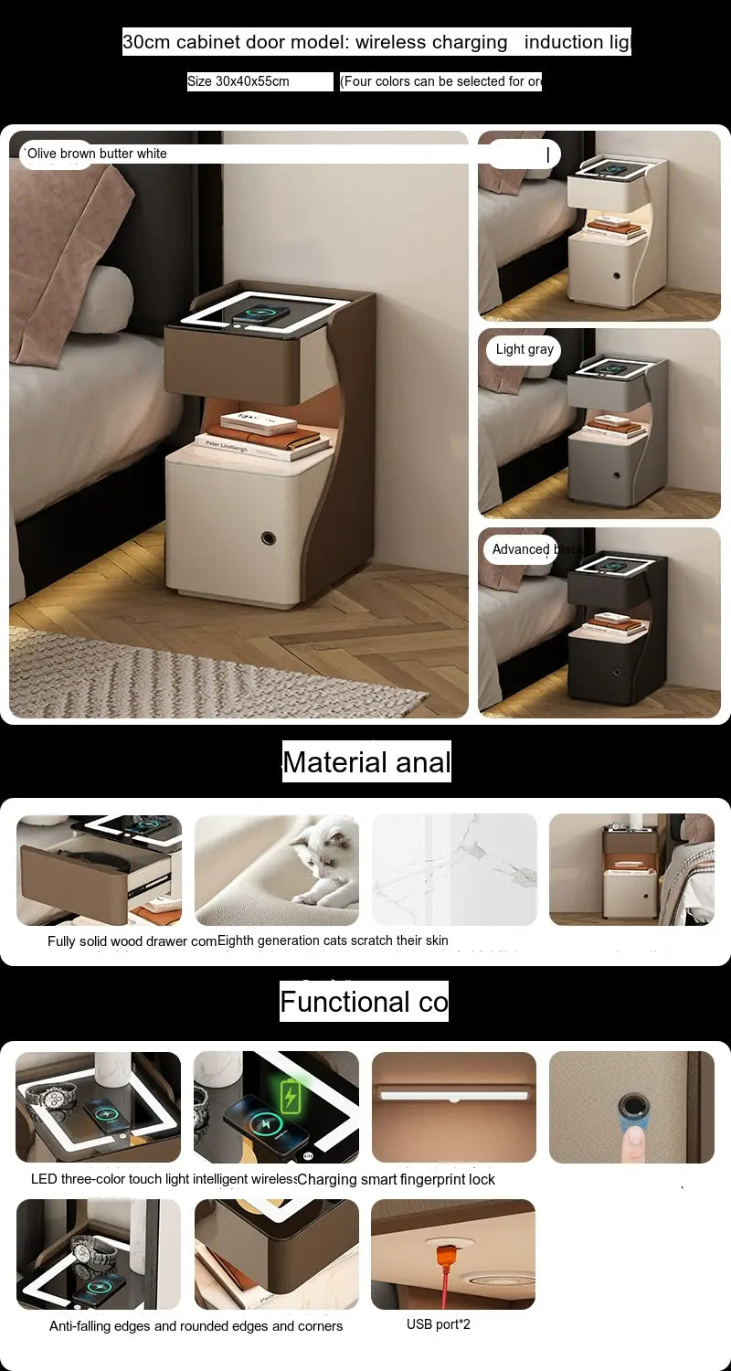 The nightstand is not just about security and tech, though. The upper surface is available in a choice of materials—featuring a high-quality antibacterial stone slab, which not only adds an elegant touch but also is easy to clean and maintain. It’s resistant to scratches, wear, and even high temperatures, making it a practical choice for everyday use. The eco-friendly substrate used in the cabinet body further complements the luxurious design, achieving a balance between beauty and sustainability.