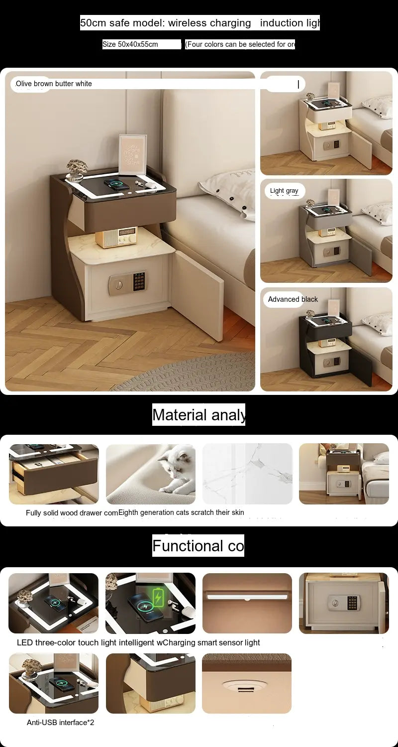 Introducing the ZOSTON Elowen Secure Wireless Charging Nightstand Safe, an innovative piece of furniture that combines functionality and style. Designed with the modern adult in mind, this light luxury style nightstand safe is not just a storage solution; it's a tech-savvy addition to your bedroom that caters to your security and charging needs.