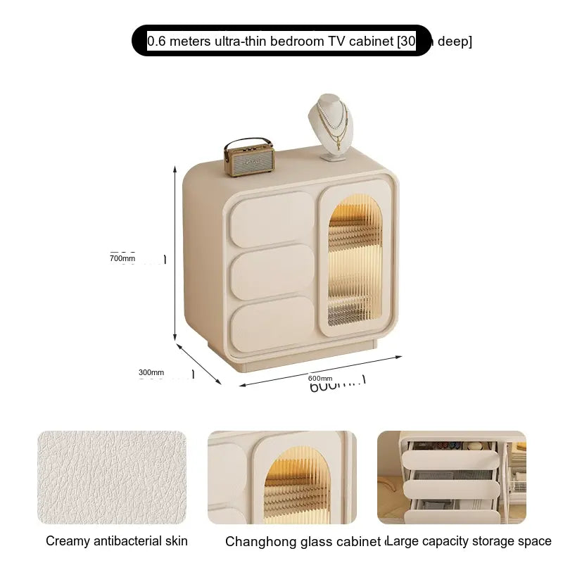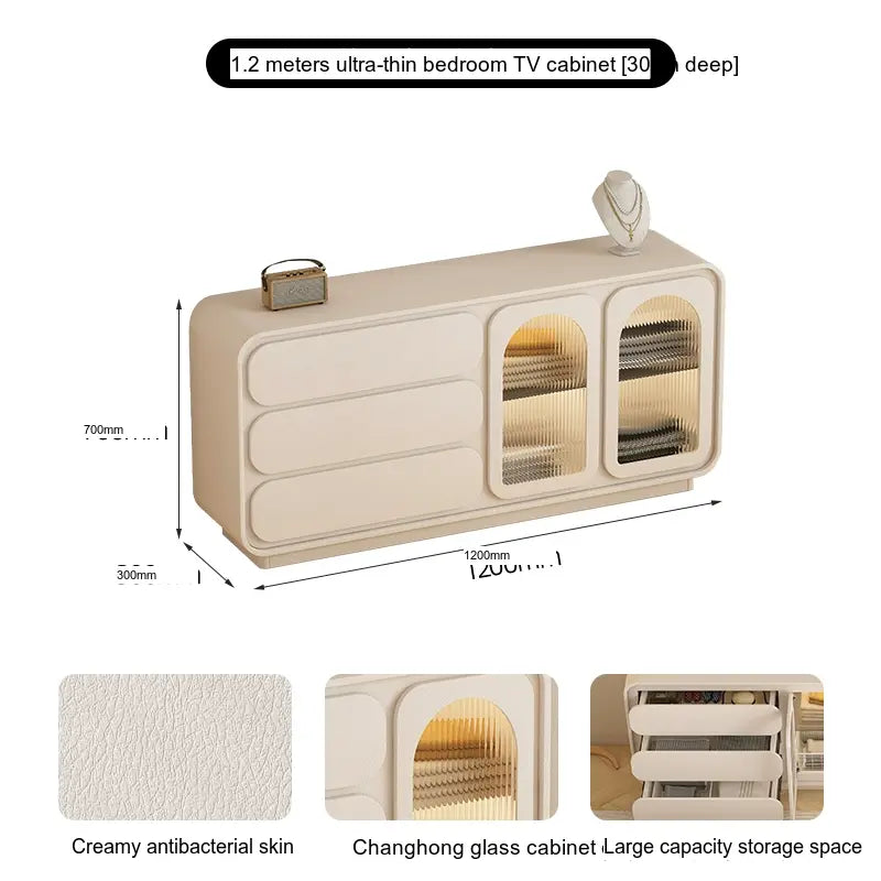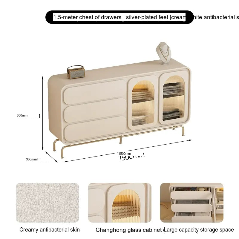 Constructed from premium artificial-based board materials, our storage cabinet features a density board that delivers strength and longevity. The unique cream-white antibacterial skin pattern not only adds sophistication to any room but also provides a hygienic surface that inhibits bacterial growth, making it perfect for households that prioritize health and cleanliness.