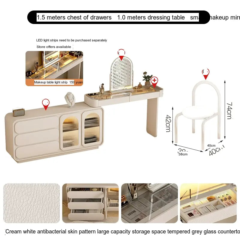 • Two or more spacious drawers for versatile storage, making it easy to keep personal items and cosmetics neatly arranged.