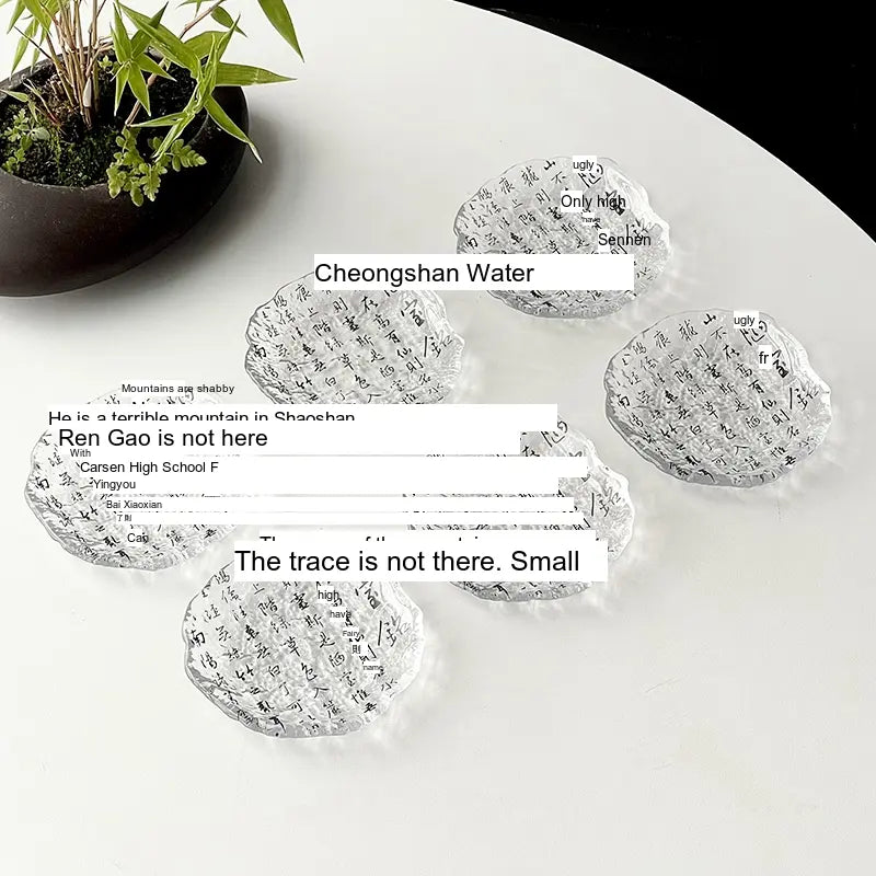 Introducing the KOMIYA TAKASHI Alessandro Elegant Artistic Calligraphy Glacier Disc, a stunning blend of functionality and aesthetics that embodies the elegance of traditional Chinese calligraphy. Crafted meticulously from premium glass, this artistic piece serves not only as a practical coaster but also as an exquisite work of art that elevates the ambiance of any space.