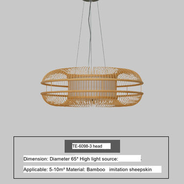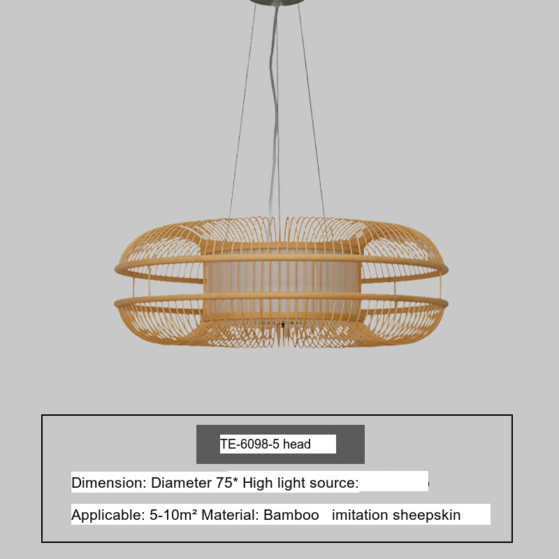 Emphasizing a simple yet modern style, the Haruki ceiling lamp features a unique bamboo art design that showcases the elegance of natural materials. The lamp's organic shapes and warm wood tones offer a cozy, inviting feel, making it ideal for various settings including tea rooms, hotels, studies, clubs, and restaurants. Choose from a variety of sizes with options including a single lamp head at 46CM diameter, a three lamp head at 65CM, and a five lamp head configuration at 75CM diameter to perfectly suit your space and aesthetic preferences.