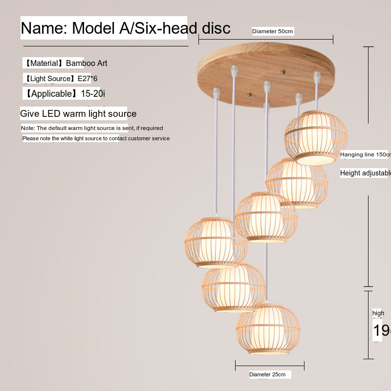 This pendant lamp features an exquisite hand-woven bamboo lamp body that highlights the skill of traditional artisans. The rich texture of the bamboo, combined with solid wood elements, creates a warm and inviting atmosphere. Available in various configurations including single-head, double-head, three-head, four-head, and six-head options, the Haruki lamp caters to diverse spatial requirements, making it ideal for staircases, dining areas, or cozy corners in your home.
