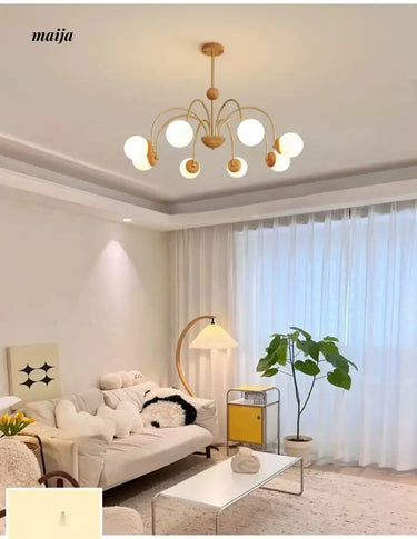 Enhance your home with the CH Golden Years Ceiling Lamp, a Wabi-Sabi-inspired chandelier that combines minimalist design with modern sophistication. Available with five or eight heads, this wooden chandelier features a blend of solid wood and glass, creating a soft, inviting ambiance perfect for any bedroom or living room.