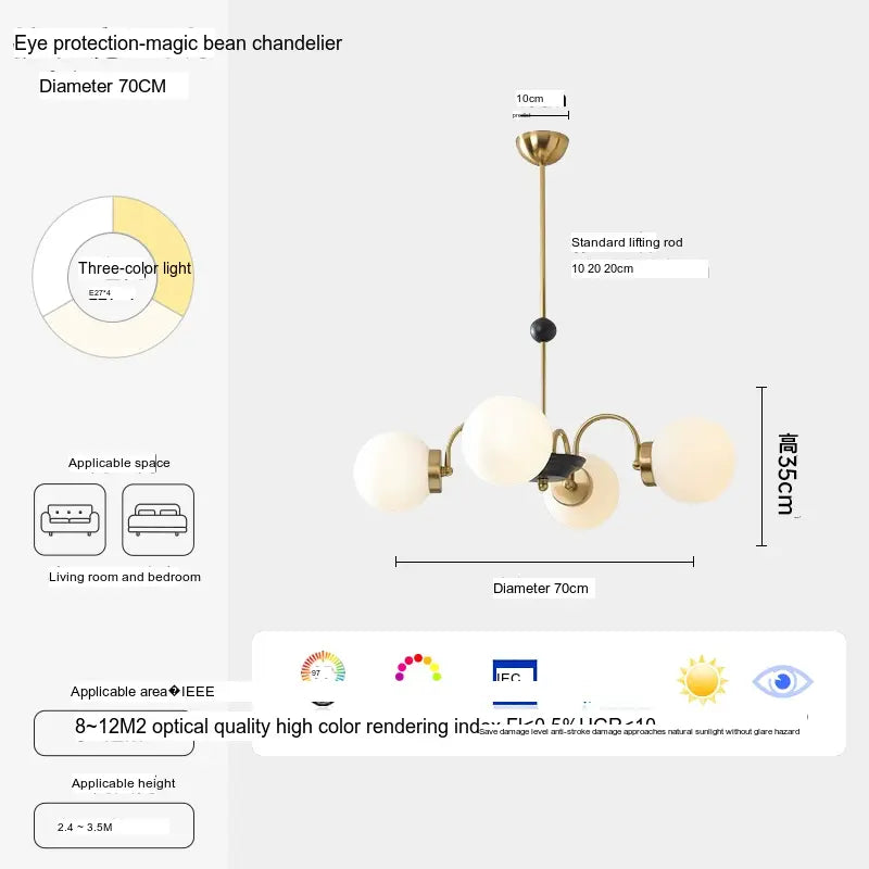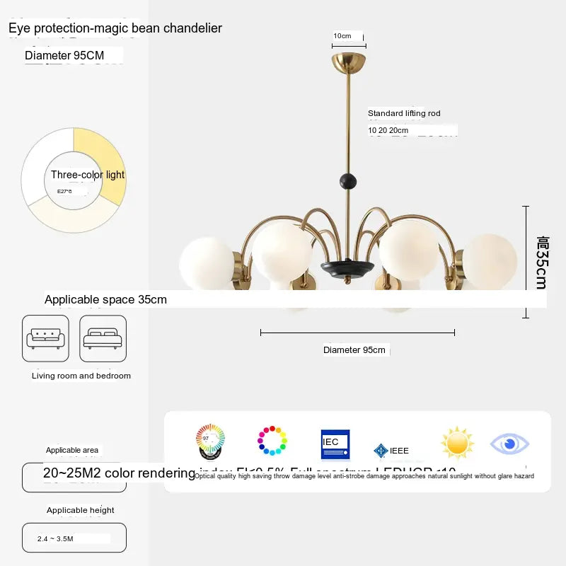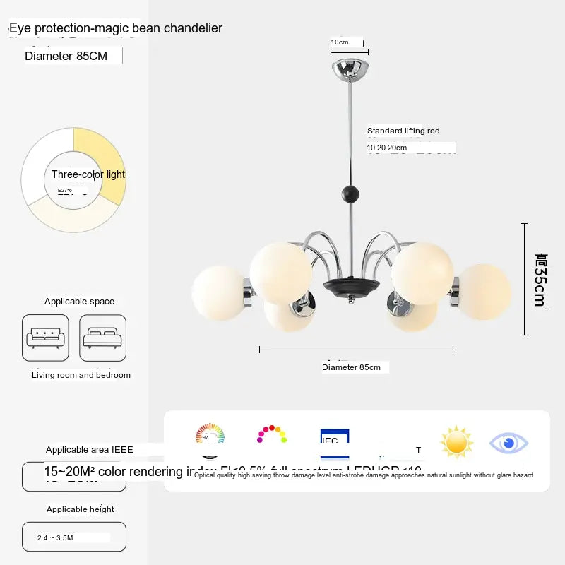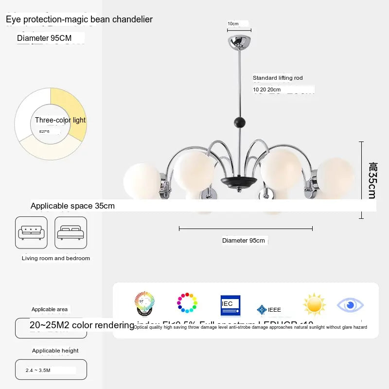 - Illumination: This stunning chandelier features eight lamp heads, providing ample illumination for areas between 10㎡ and 15㎡. With its three-color temperature feature (3000K-4500K-6000K), you can adjust the light according to your mood or requirement, creating the perfect ambiance throughout the day.