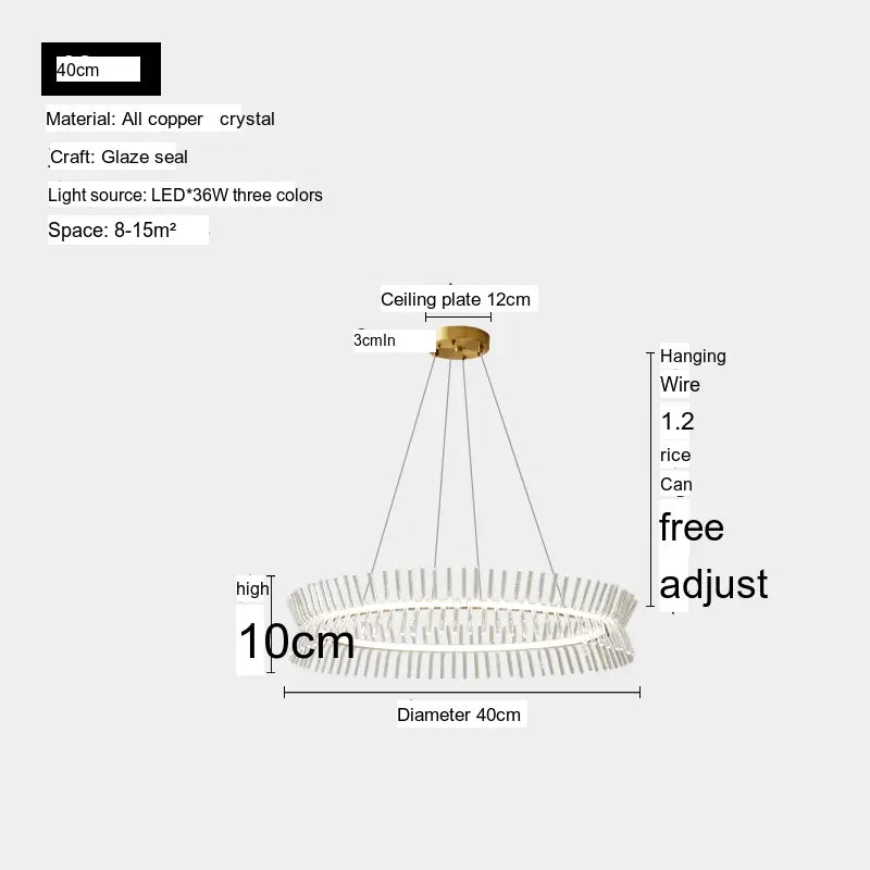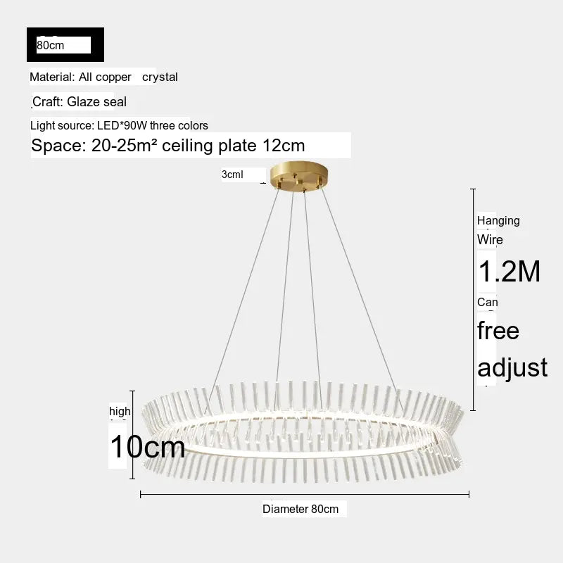 Made from all-copper materials, combined with a stunning crystal lampshade, this light fixture reflects luxury and modern aesthetics. Its elegant design and classic materials ensure it fits seamlessly into any décor style, whether your home is contemporary, minimalistic, or traditional.