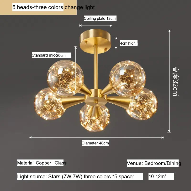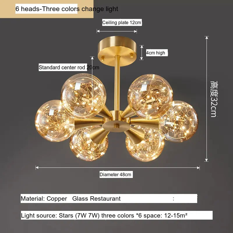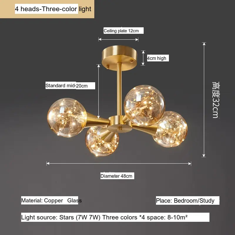 Discover the exquisite Elowen Elegant Minimalist Copper Glass Ceiling Lamp, an ideal blend of sophistication and functionality for your living space. This beautiful chandelier is designed to encapsulate the essence of Northern European aesthetics, making it the perfect focal point for any bedroom or study. Created with meticulous attention to detail, the Elowen lamp harmonizes modern design elements with a timeless elegance that can enhance any interior decor.