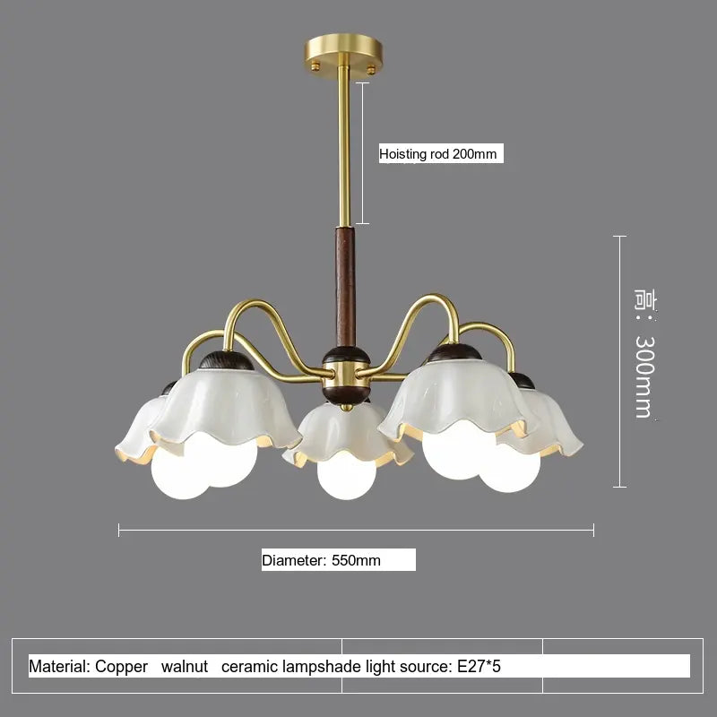 Constructed using premium materials, including high-strength copper and ceramic, the Haruki ceiling lamp is designed to stand the test of time. The forging process endows it with remarkable sturdiness while offering an aesthetically pleasing finish. The auxiliary material of the lampshade is crafted from high-quality glass, further enhancing its elegance.