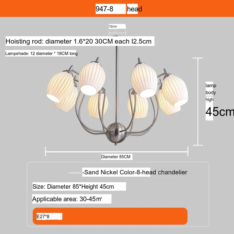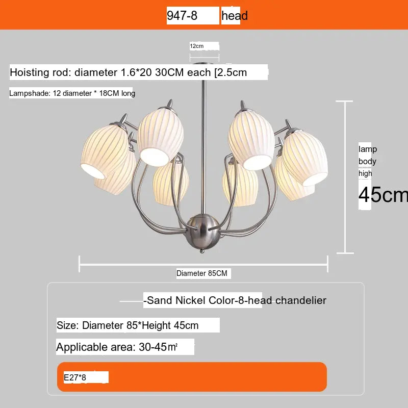 The Kaori lamp is available in several configurations to suit your lighting needs—choose from three heads, four heads, six heads, or eight heads, with energy-efficient LED options ranging from 36W to 96W. Each model features warm light and white light settings, providing versatile illumination for different occasions. Additionally, the lamp's three-color light change option allows you to switch between warm yellow, neutral, and cool white light, tailored to create the perfect ambiance for every moment.
